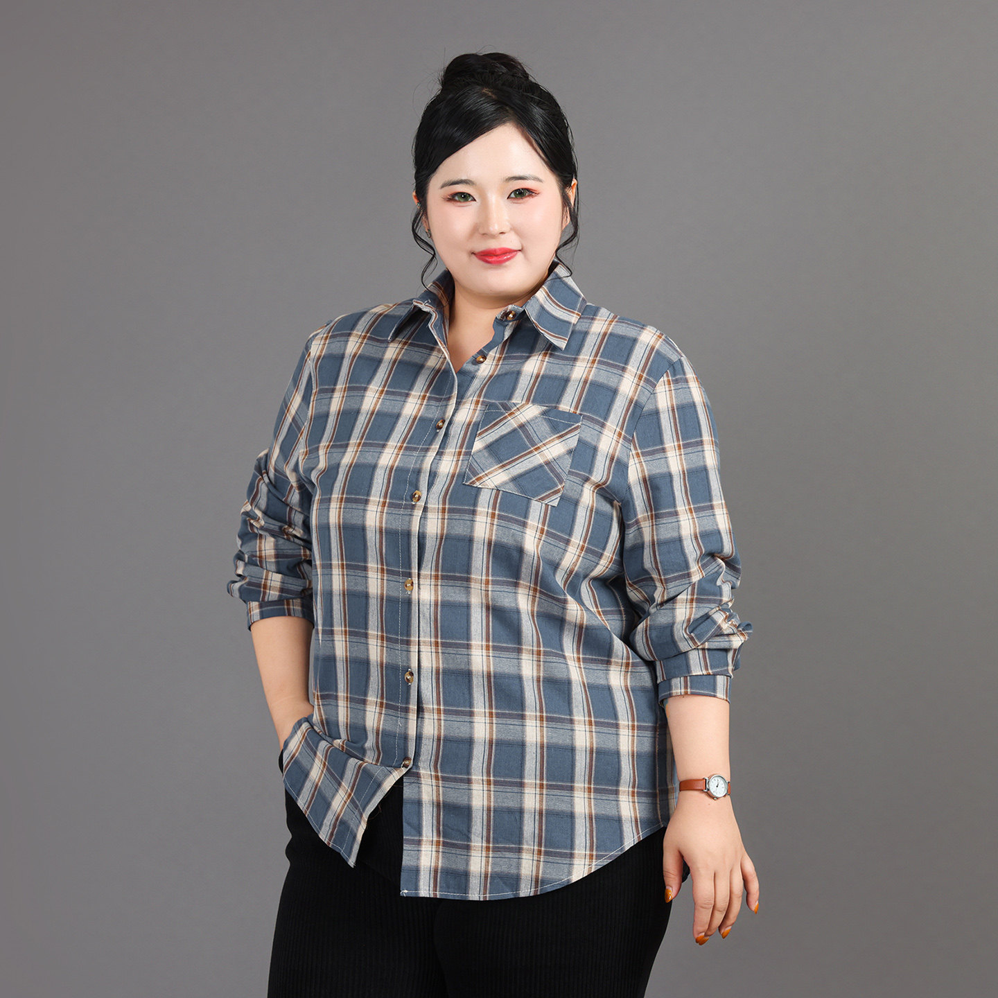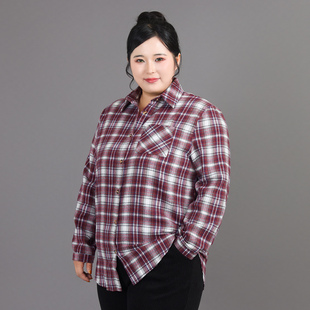 中老年气质女中年人格子大码 300斤妈妈春秋装 新款 衬衫 衬衣 长袖