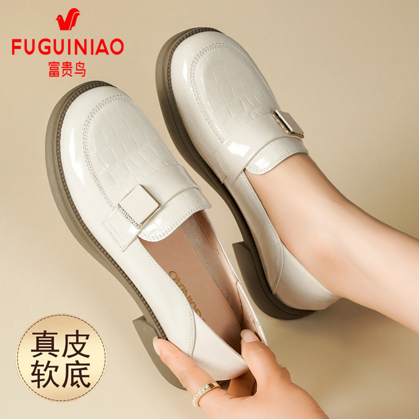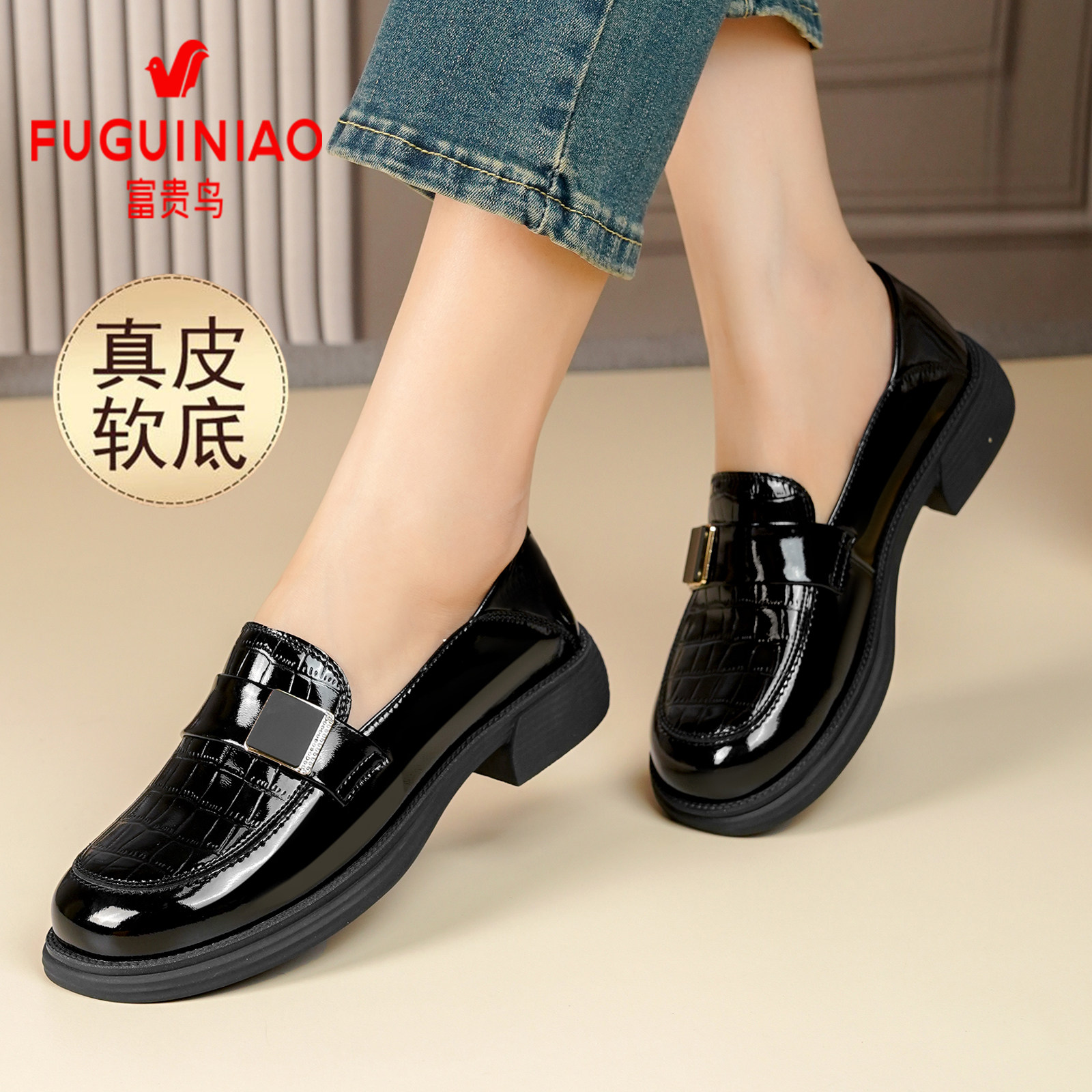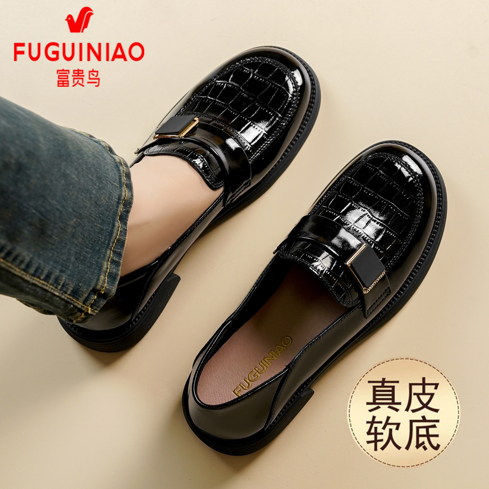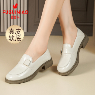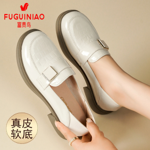 女英伦软底乐福鞋 富贵鸟女鞋 真皮透气黑色休闲小皮鞋 秋季 2025新款