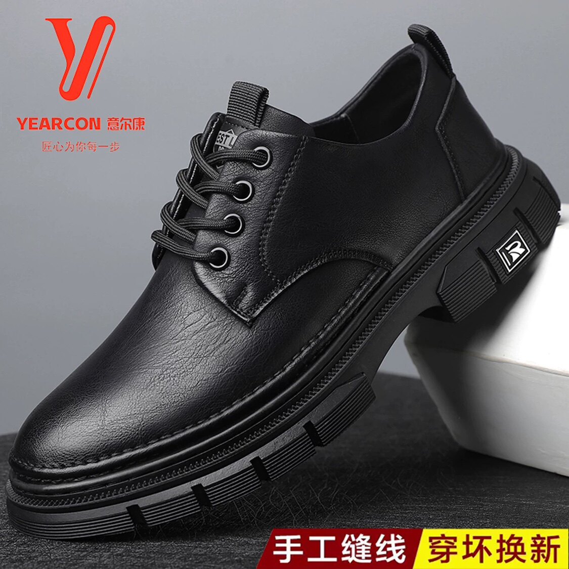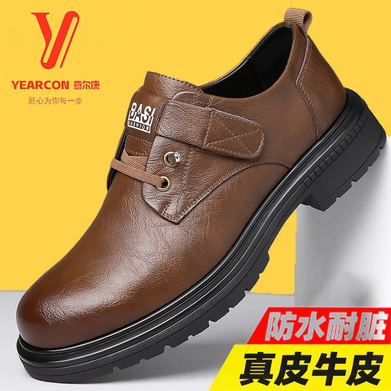 新款 鞋 英伦运动休闲皮鞋 真皮透气系带商务软底工装 男士 意尔康男鞋