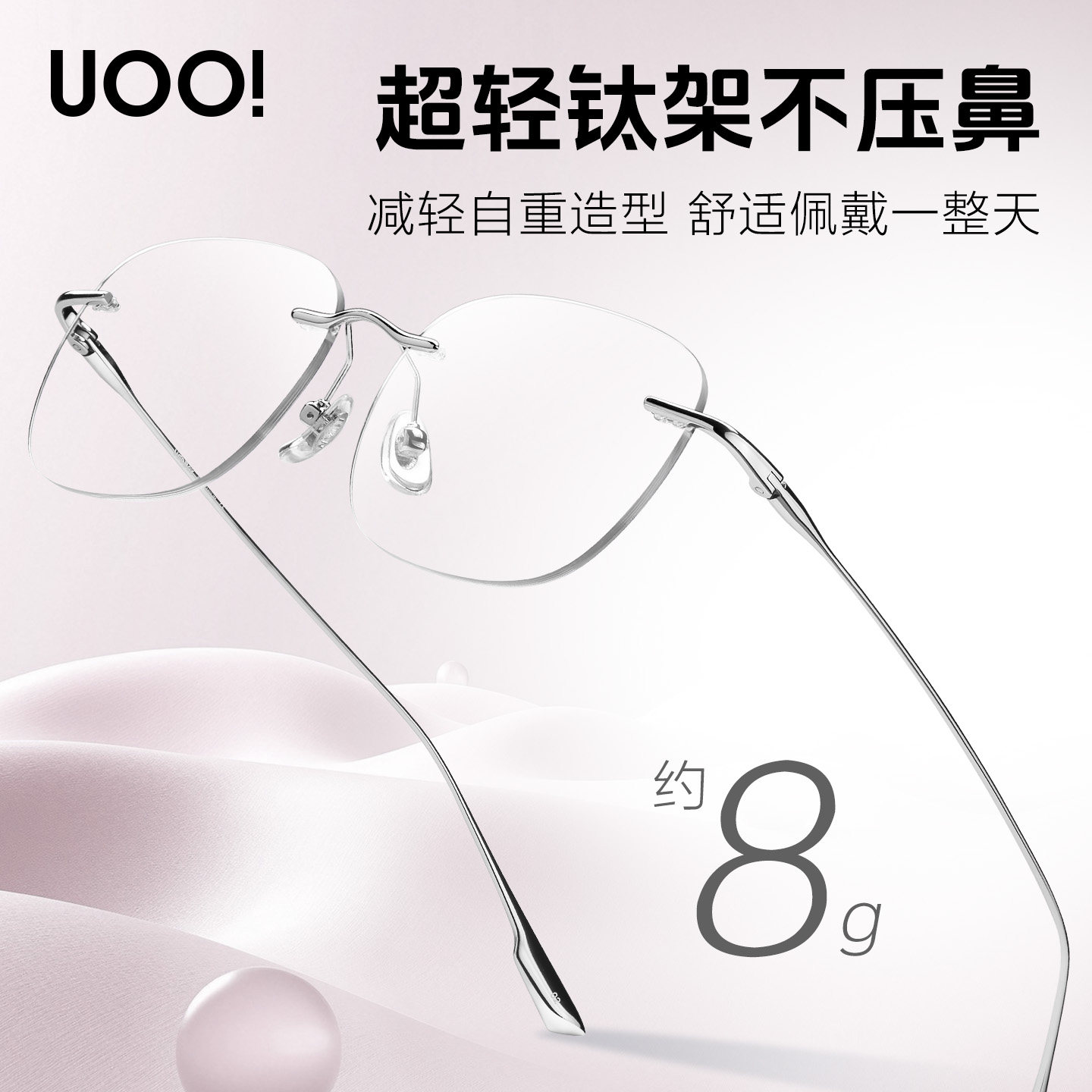 优睛无框眼镜女超轻纯钛近视可配度数镜框高级感防蓝光无边框镜架