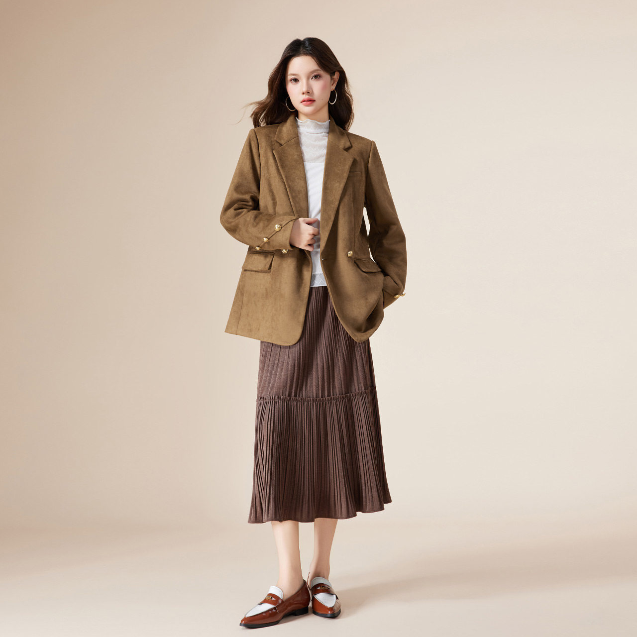 VCFSI简约休闲风男士 外套商务通勤单西卡其色宽松西服 西装