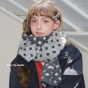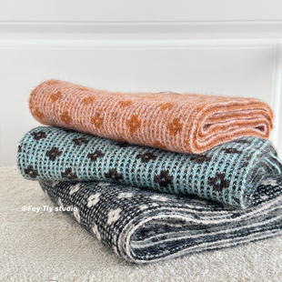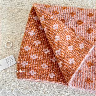 保暖围脖学生女士 加长加厚针织围巾披肩秋冬季 feytiy 复古小花花
