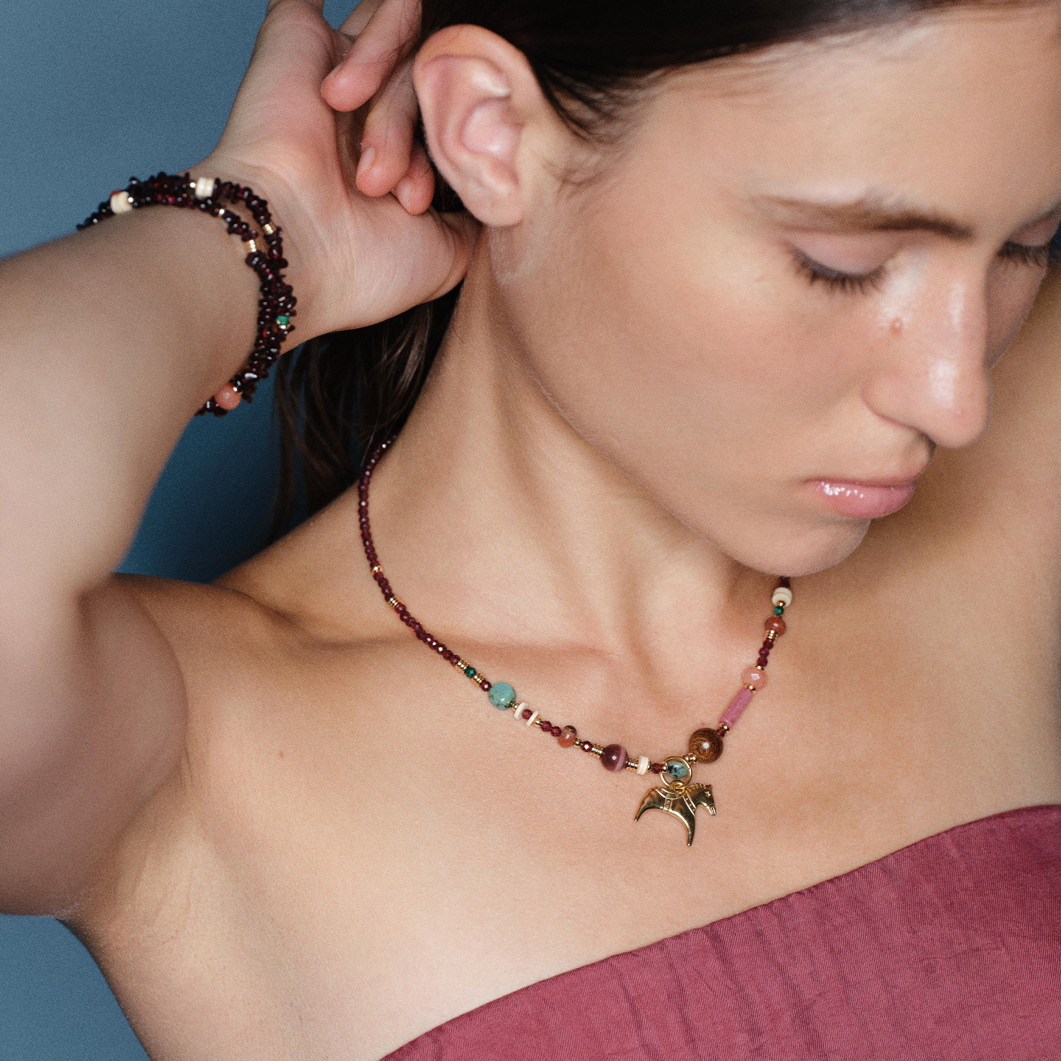 美拉德串珠项链女款 轻奢小众设计感锁骨链颈链叠戴毛衣链 2025新款