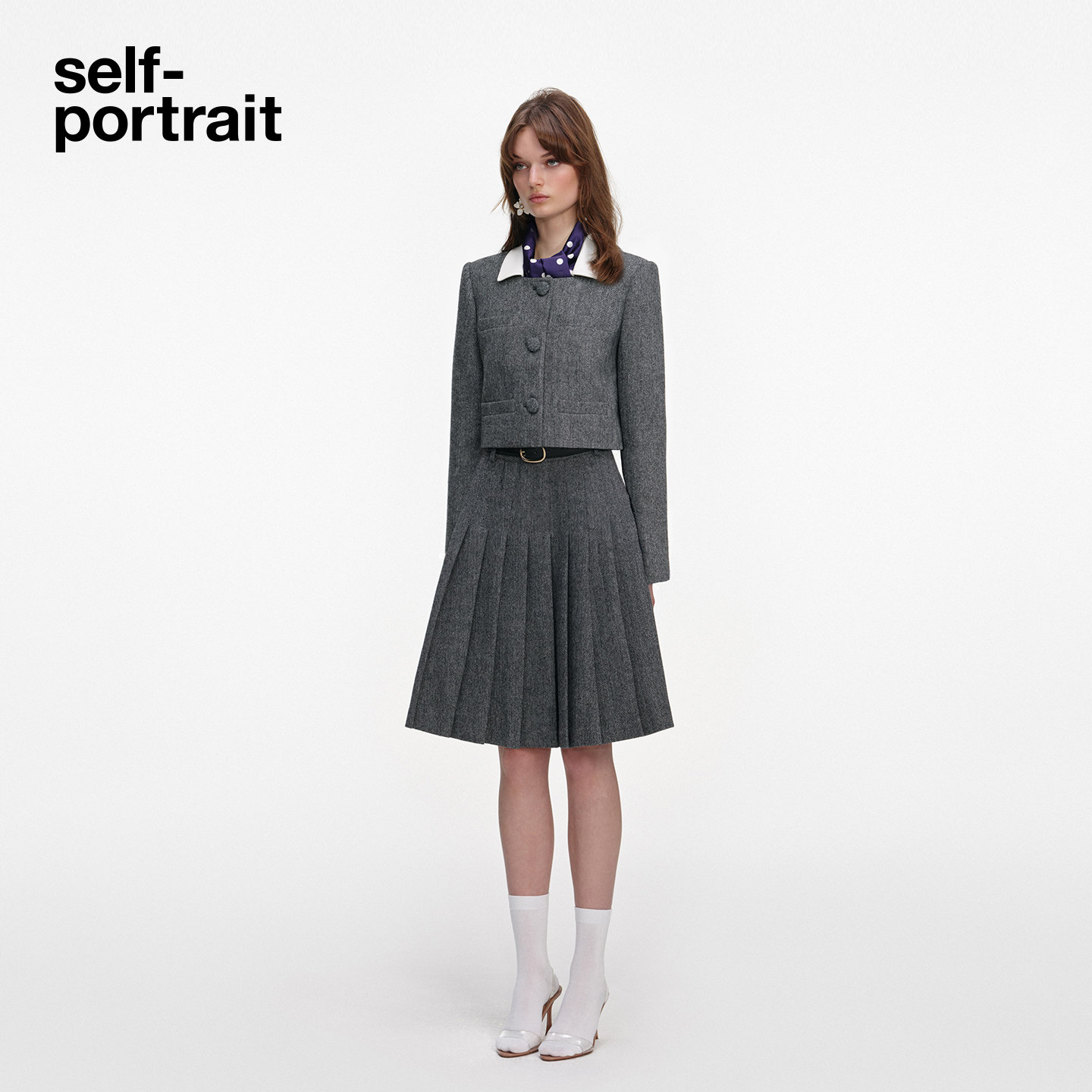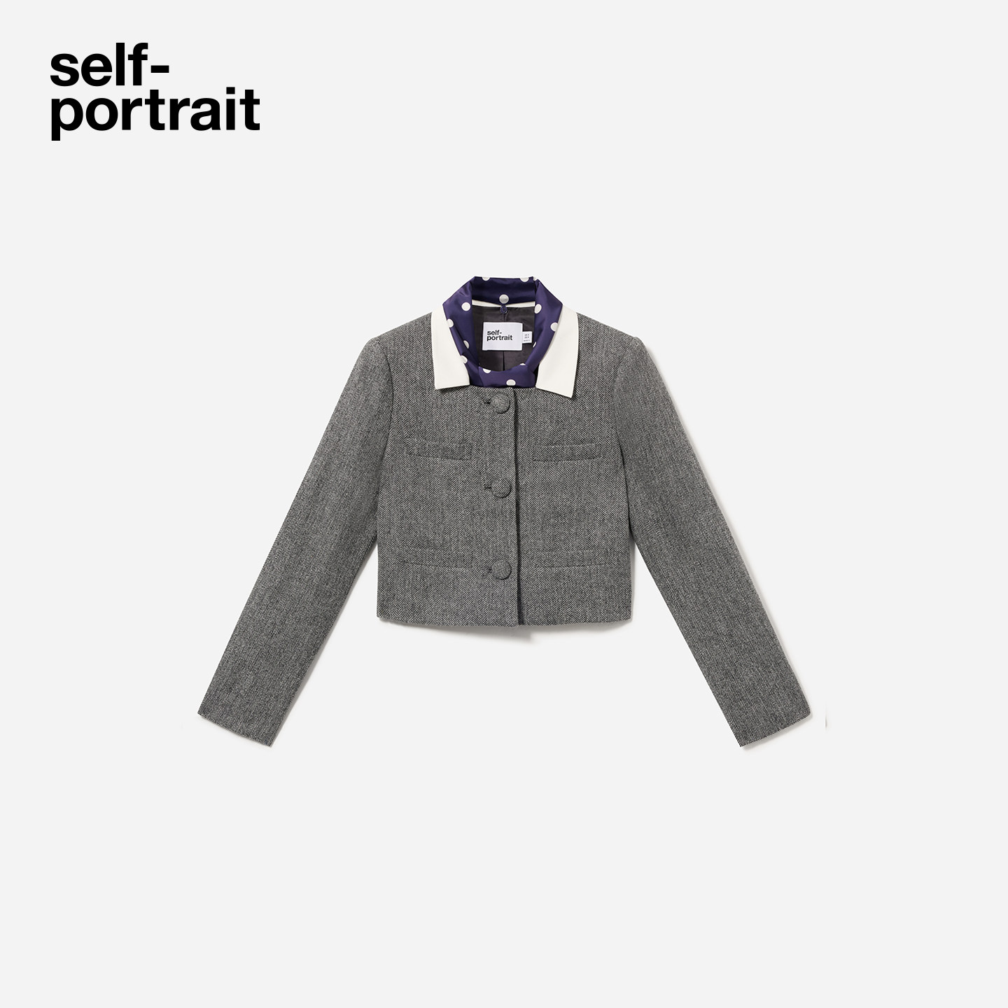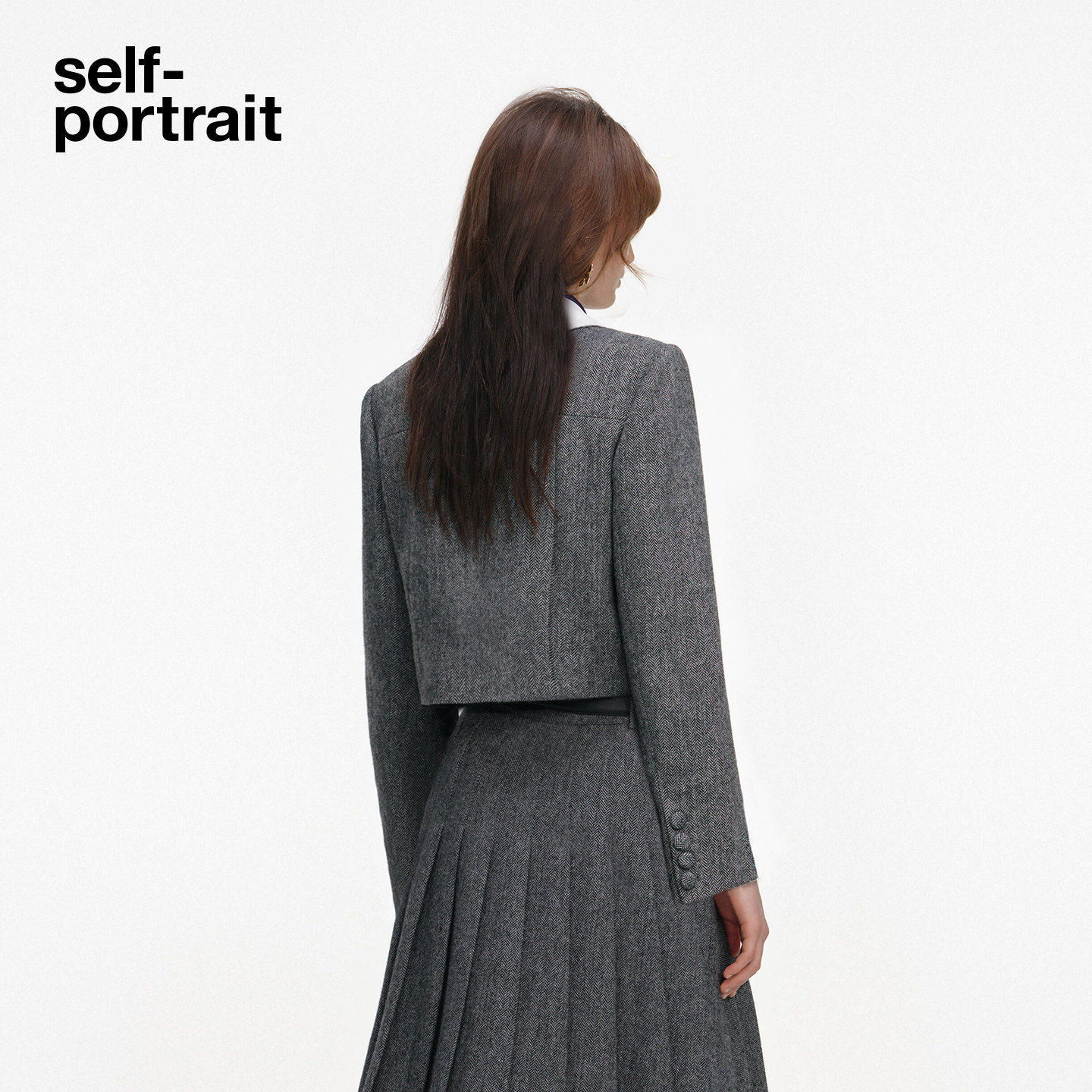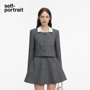 灰混色可拆卸丝巾人字纹羊毛混纺外套 2026早春新款 self portrait