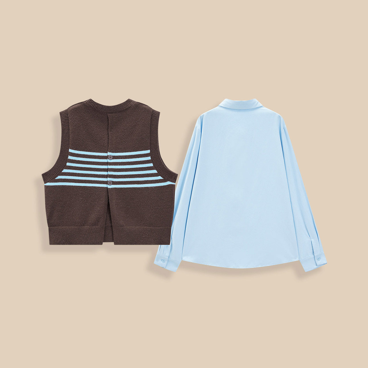 蝴蝶结设计感宽松百搭马甲冬季 森女部落学院风元 女新款 套装 气时尚