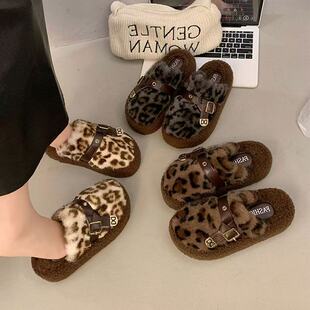 网红高级感厚底毛绒包头棉拖鞋 豹纹毛毛拖鞋 女外穿2025秋冬新爆款