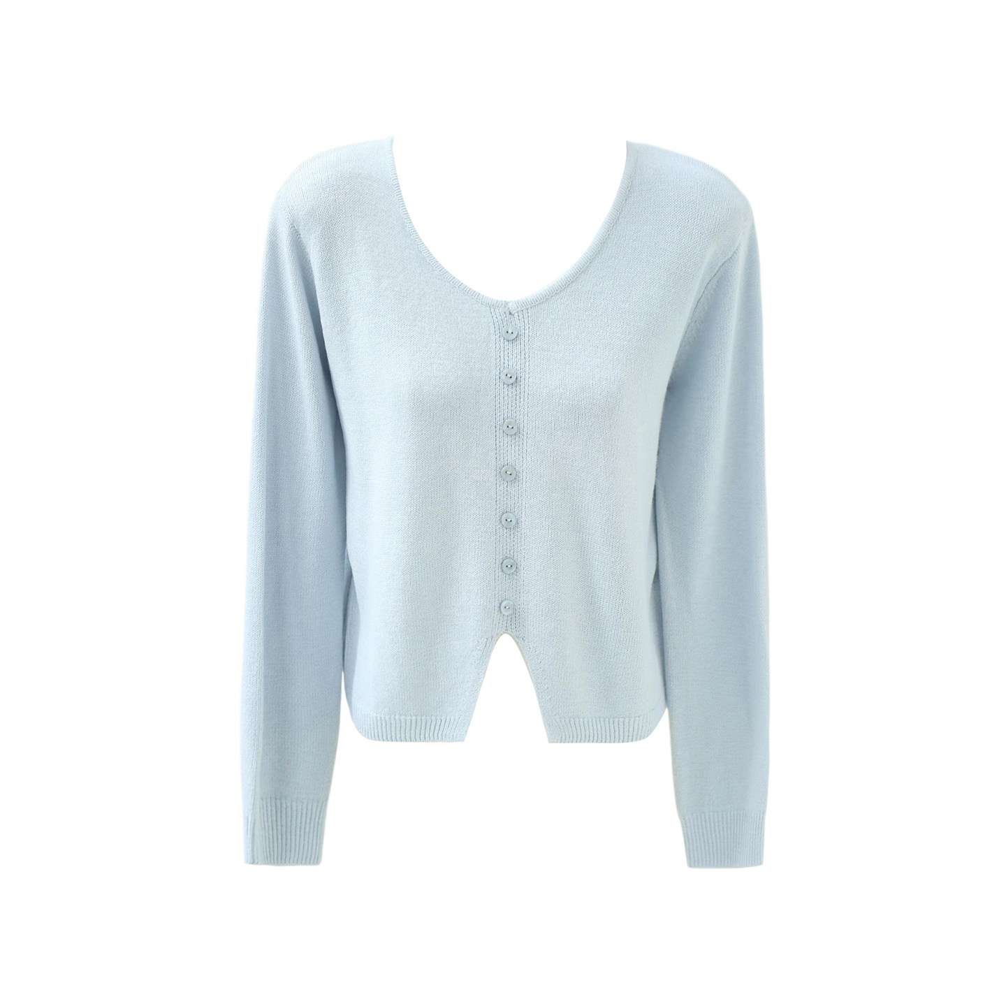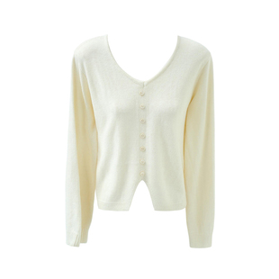 不退不换 2件5折 系温柔短款 开叉长袖 上衣毛衣 U领针织衫 清仓