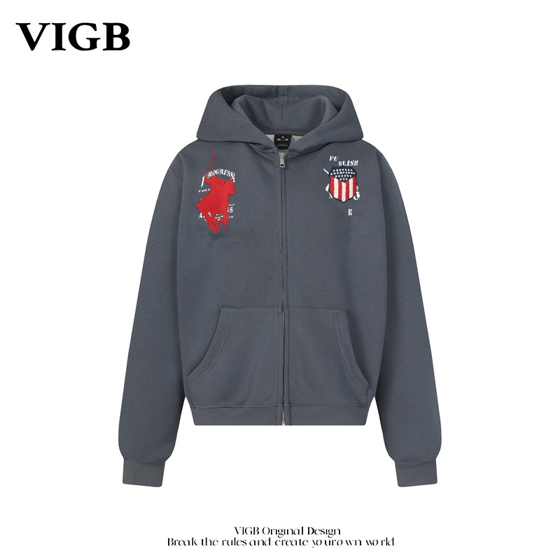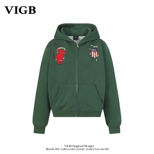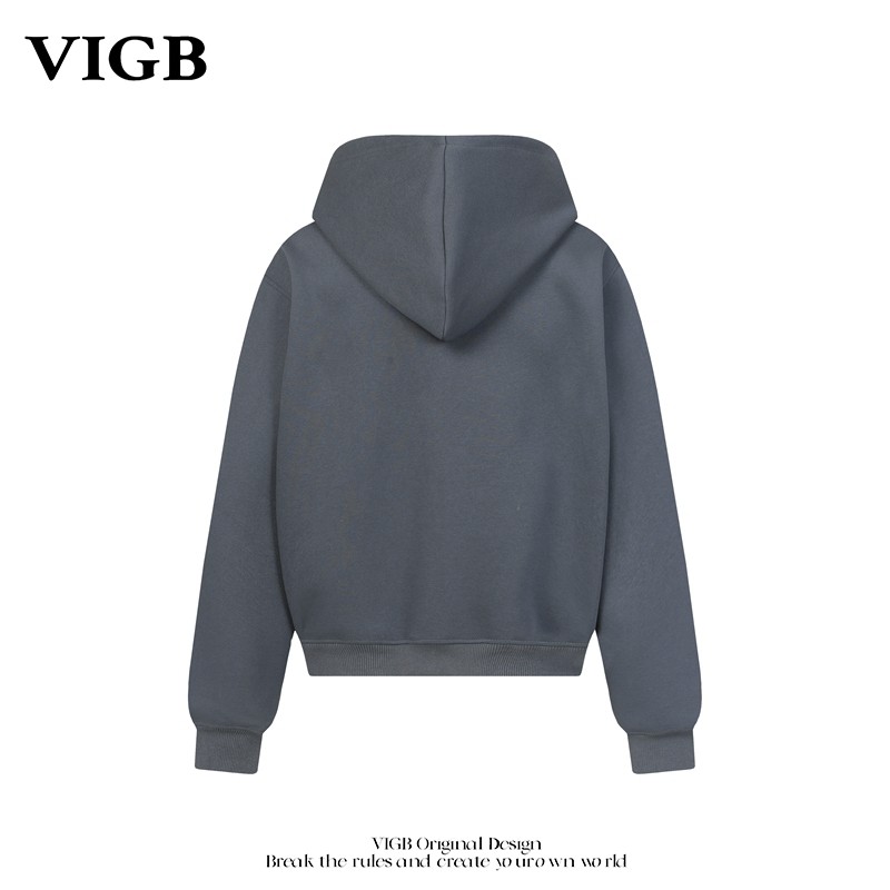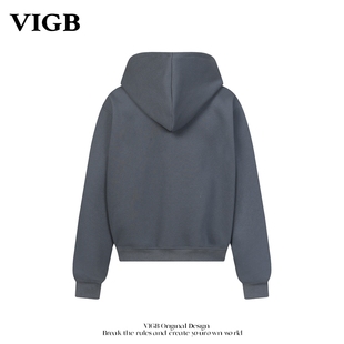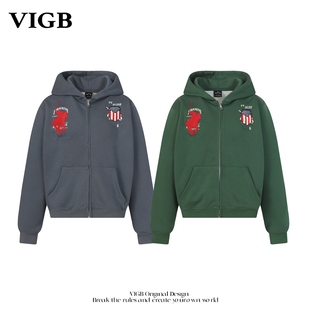 复古字母刺绣连帽卫衣小众设计重磅百搭帽衫 VIGB 原创国潮美式