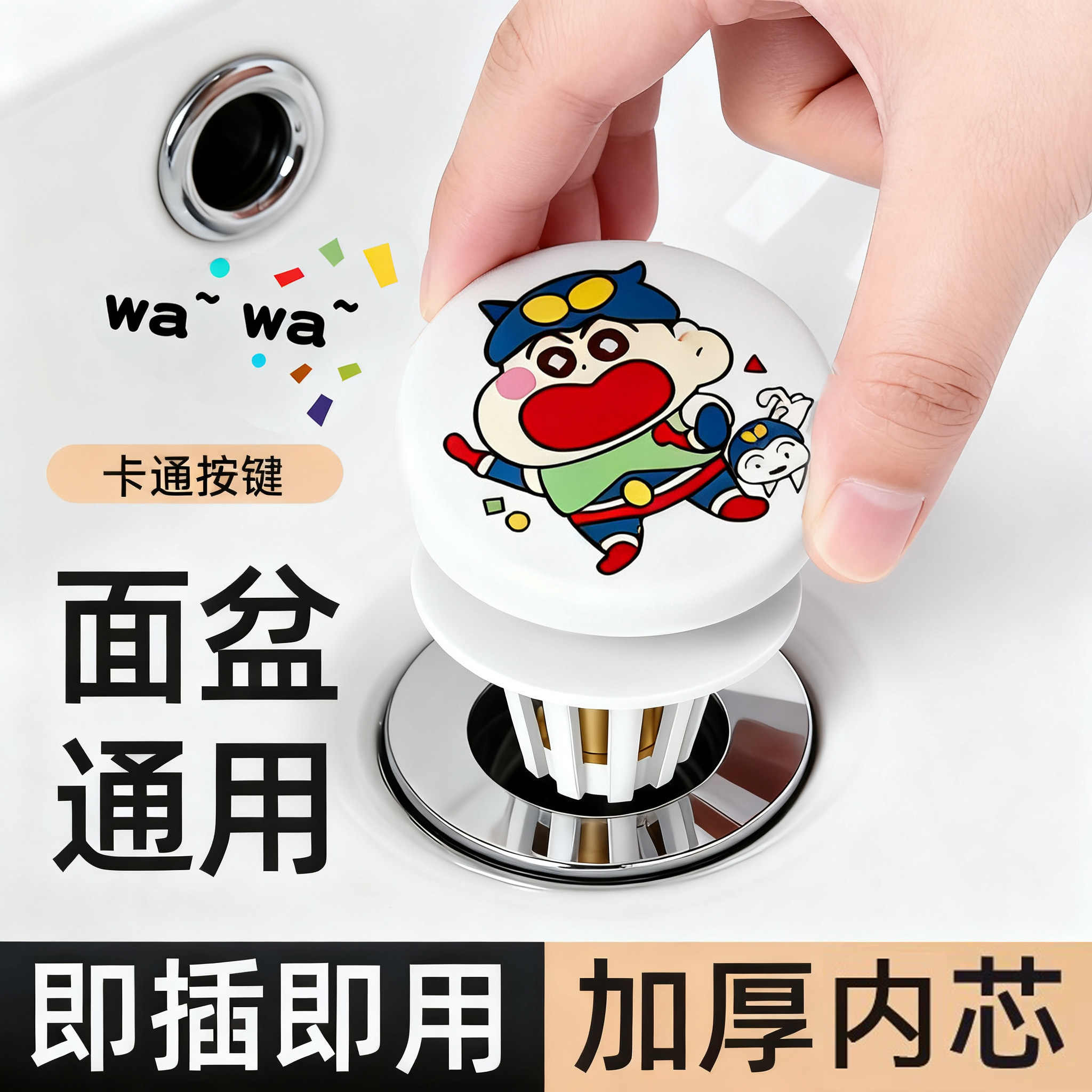 卡通kitty陶瓷面盆塞卫生间洗手池漏水塞洗脸盆下水器创意弹跳芯