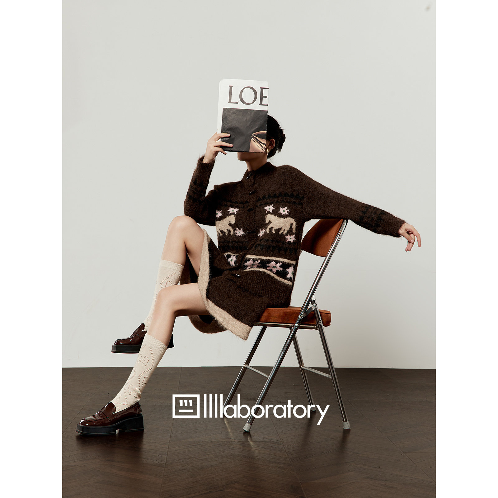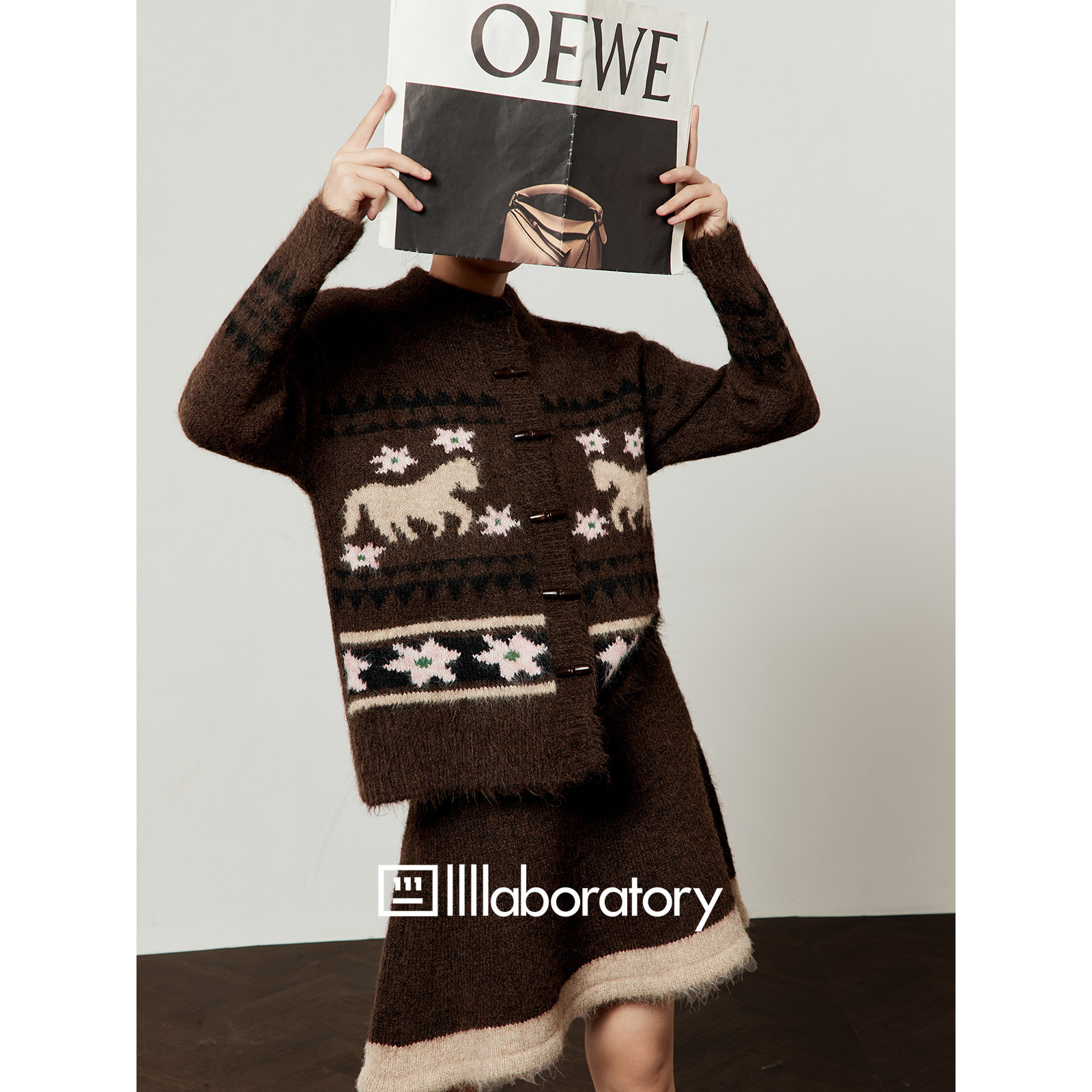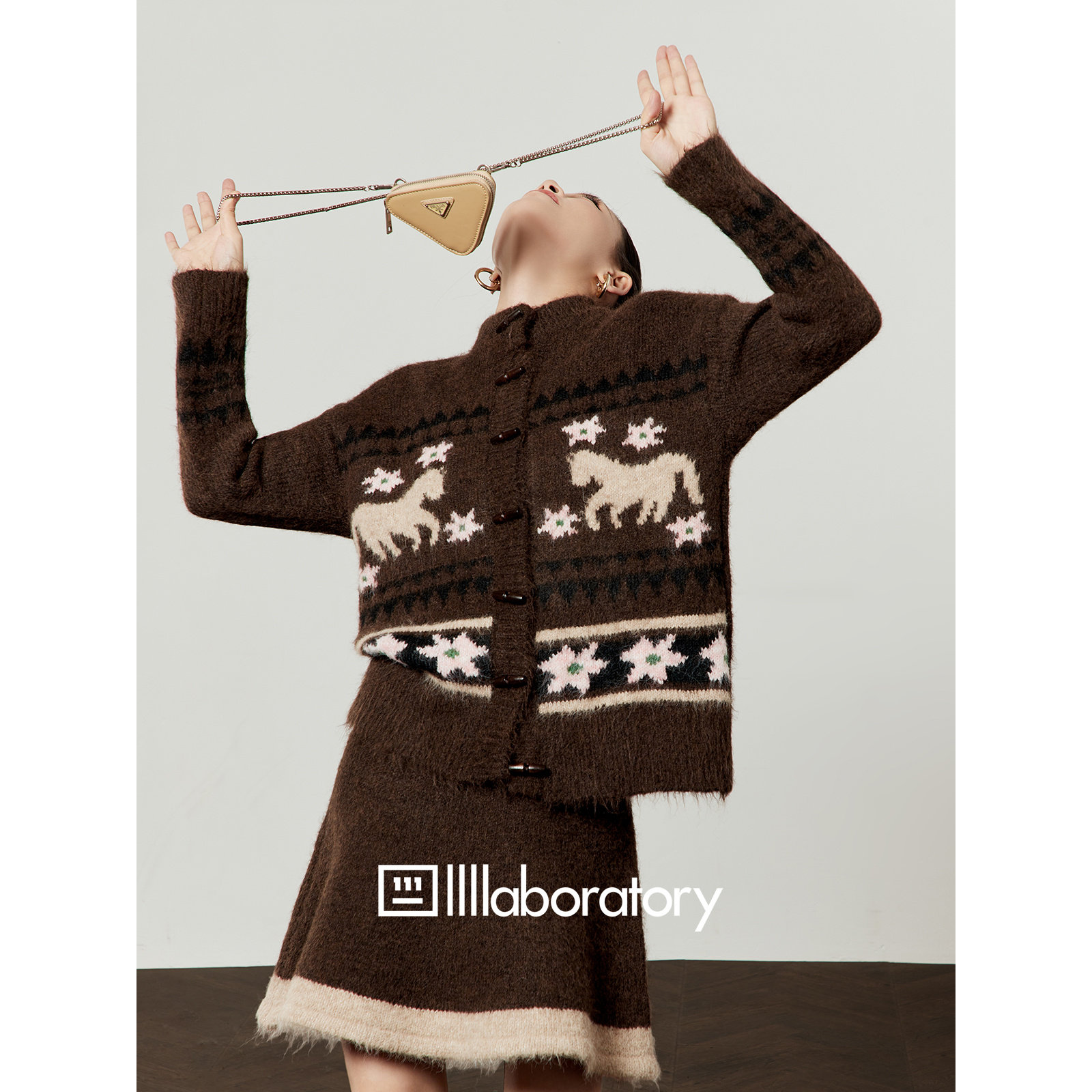 新款 女2026春季 小马刺绣上衣半身针织裙两件套 卡其色套装 周里物