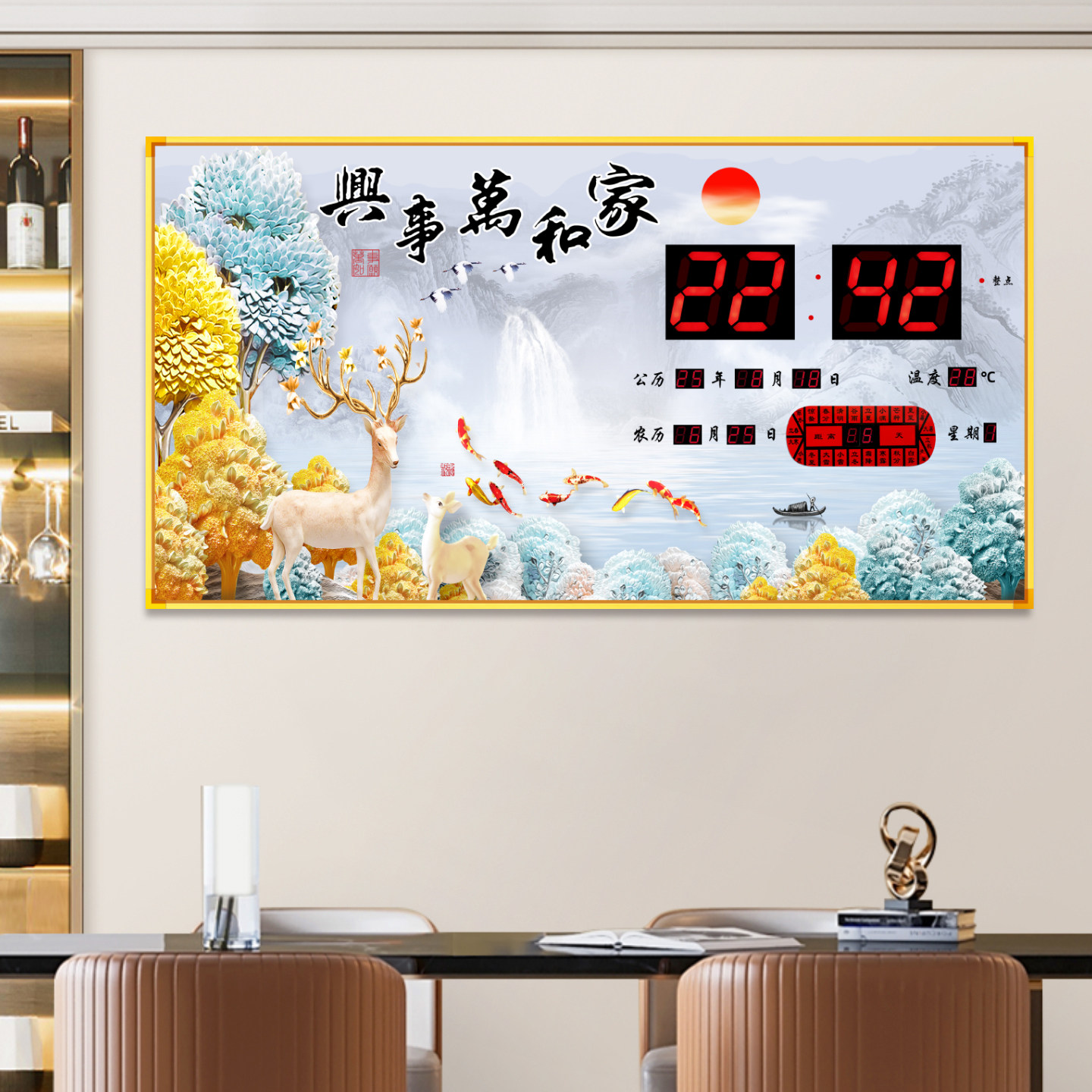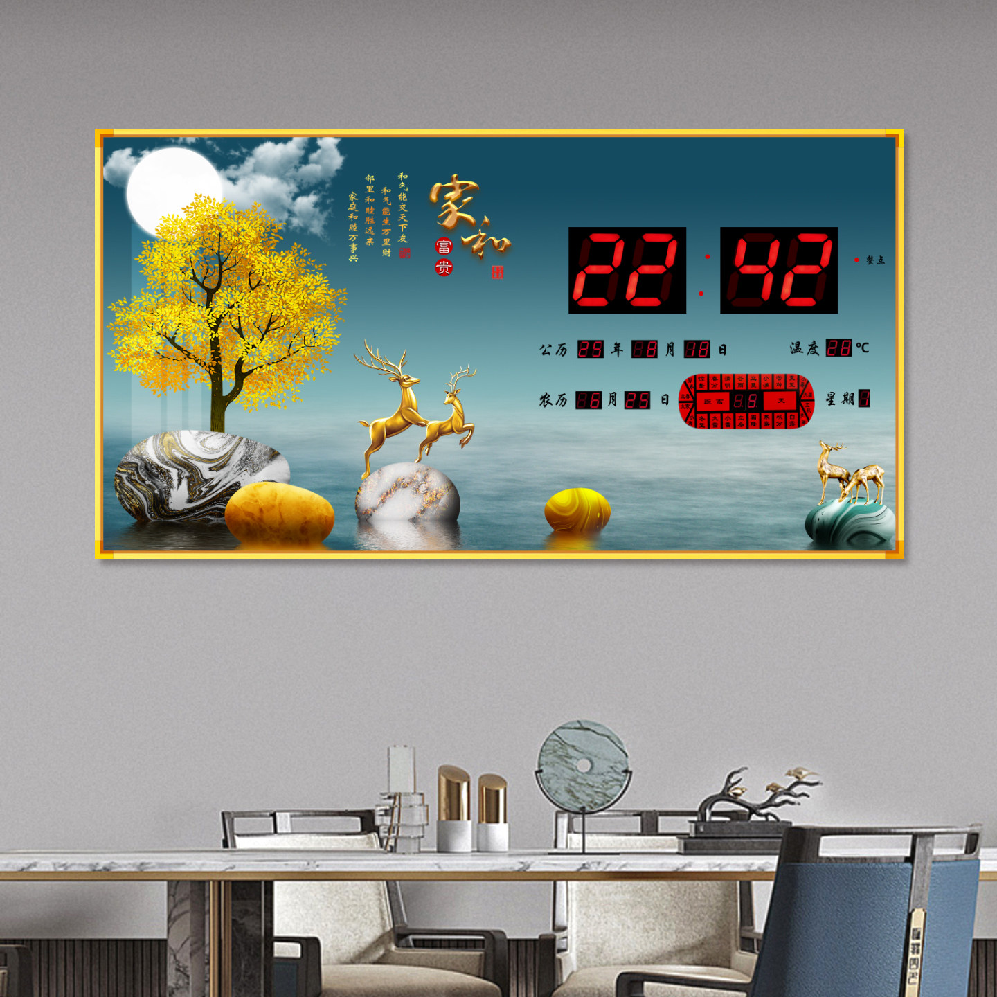 挂墙轻奢高级感时钟表挂钟 万年历电子钟客厅2025新款 插电款 数码