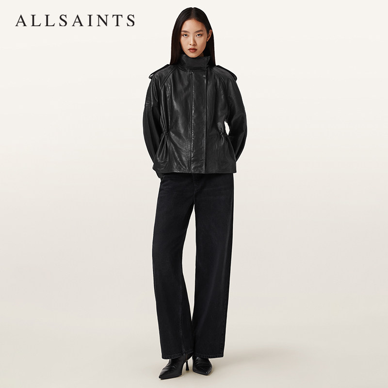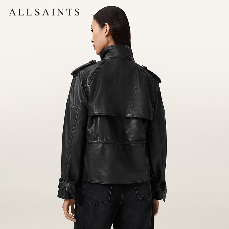 ALLSAINTS女士宽松廓形皮衣外套Serne真皮夹克风衣2026年春季