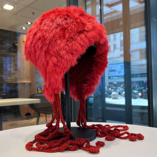 川西新疆旅游红色帽子气氛感流苏针织毛绒帽显脸小加厚保暖雷锋帽