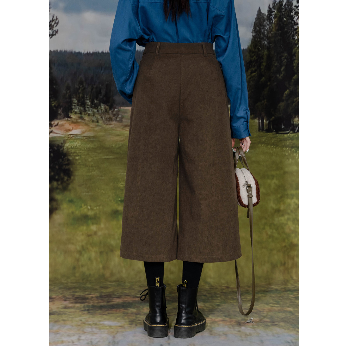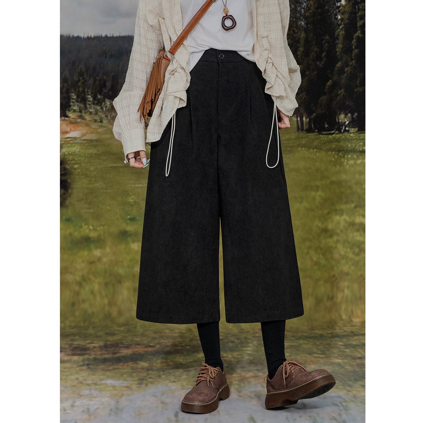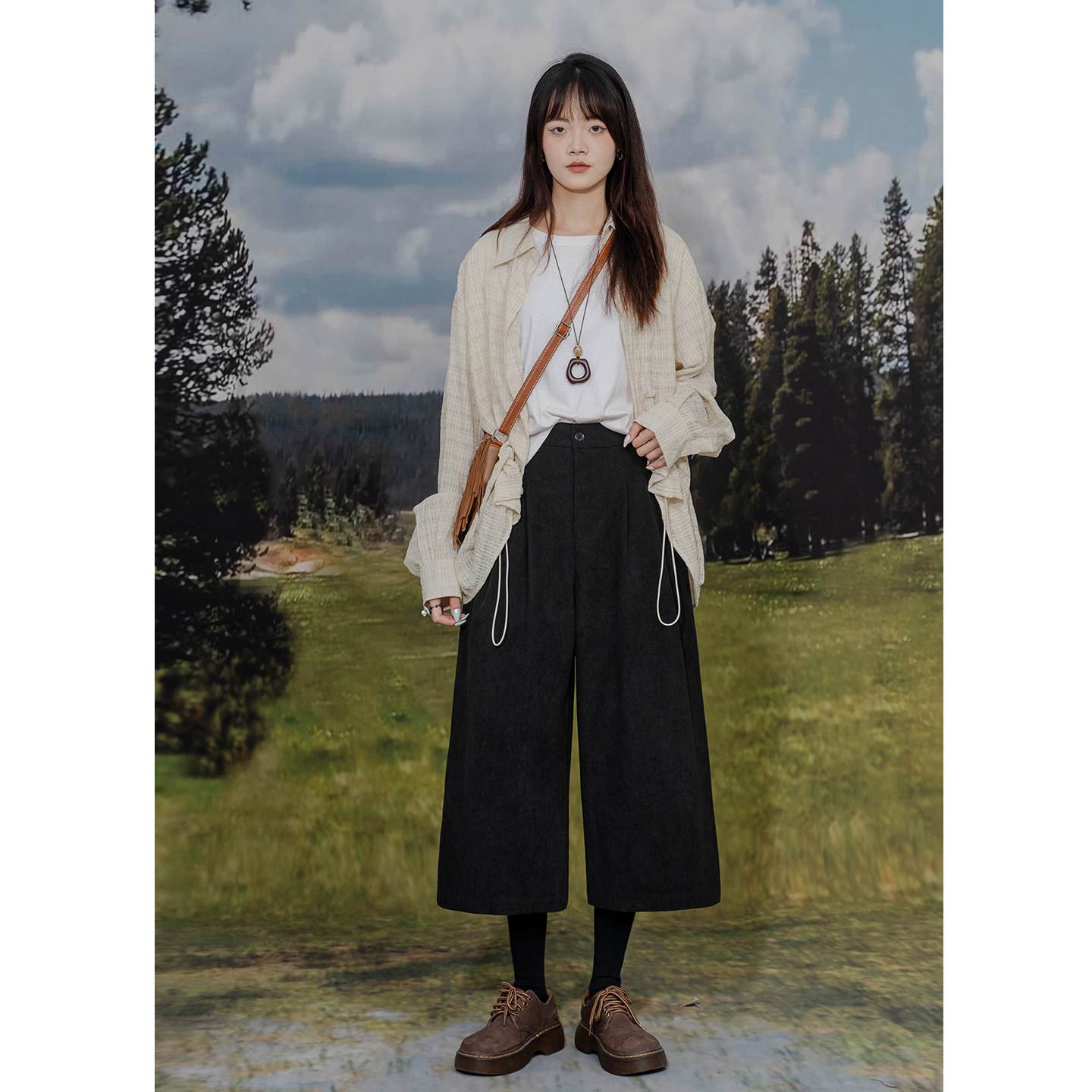 简约百搭条绒宽松休闲八分裤 显瘦直筒裤 高腰西装 复古灯芯绒阔腿裤
