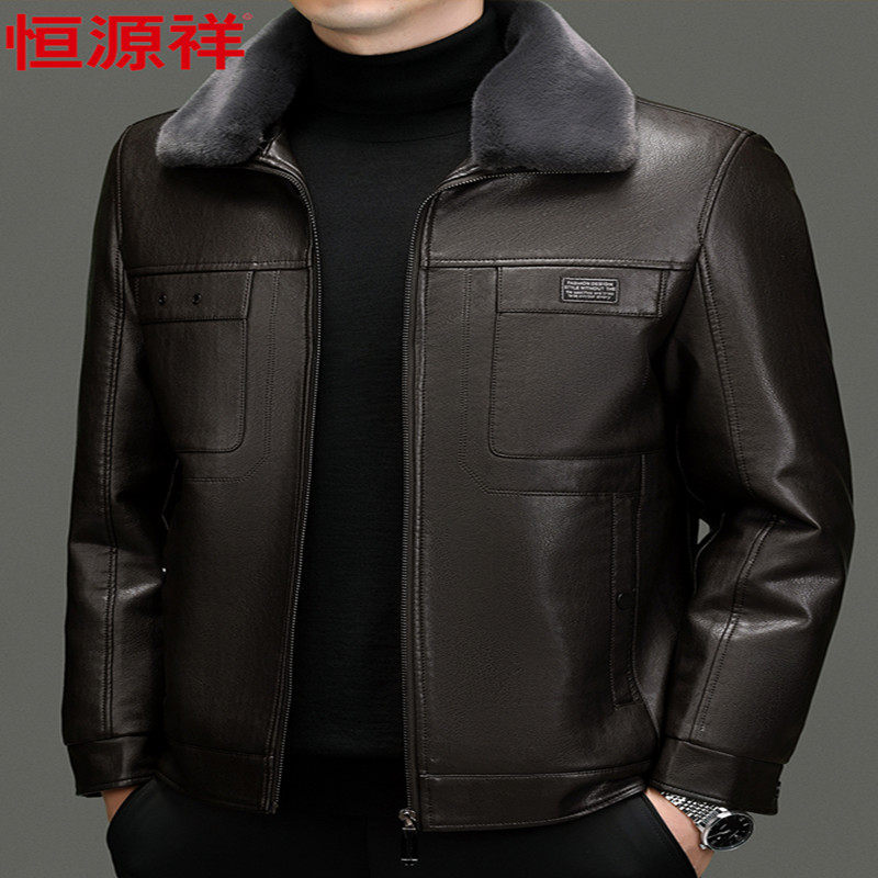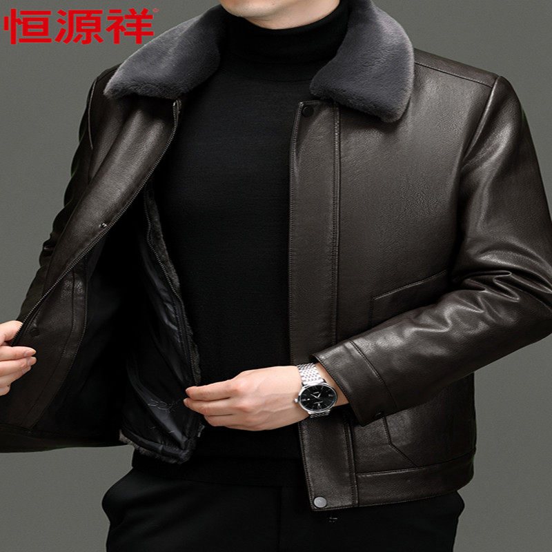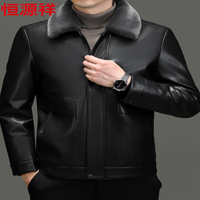 啄木鸟真皮皮衣男秋冬加绒加厚皮夹克男士 羊皮外套软 中老年爸爸装