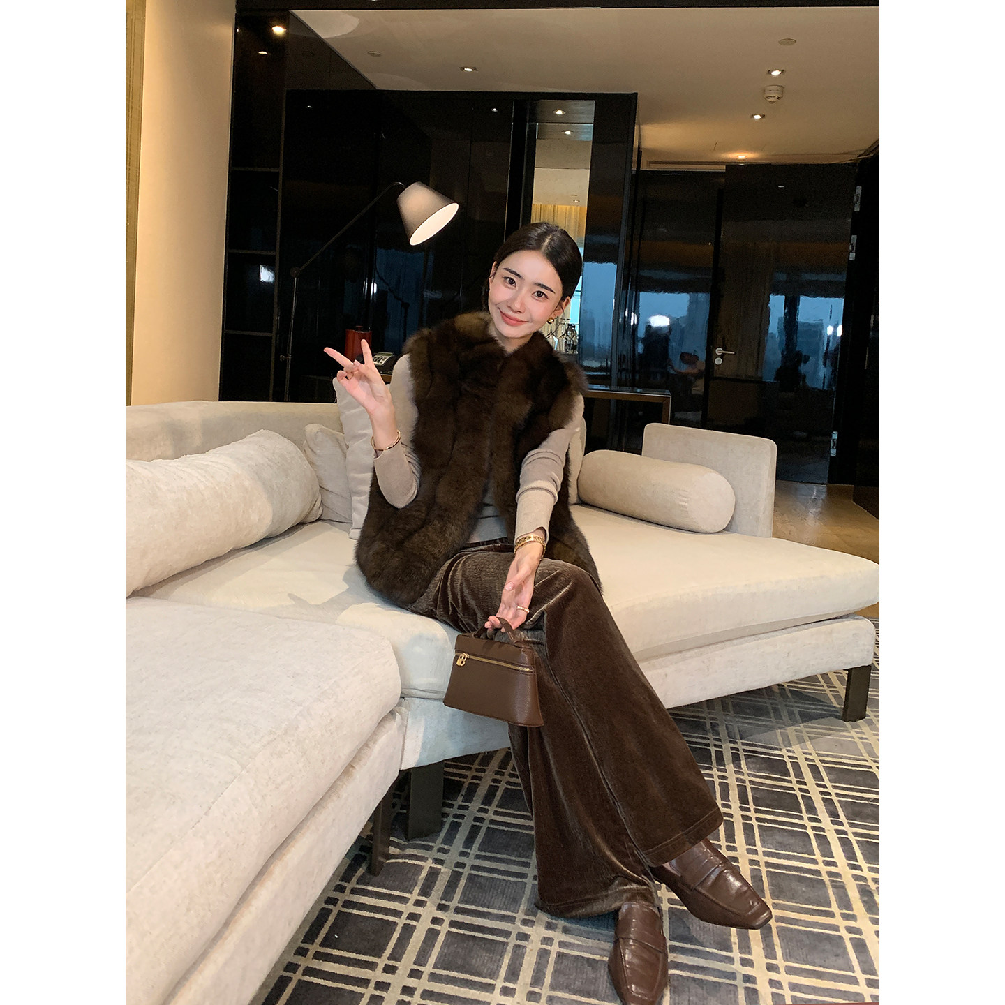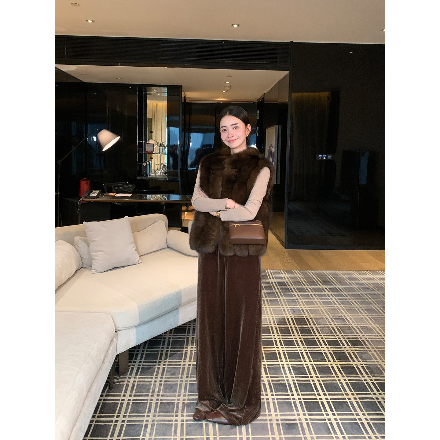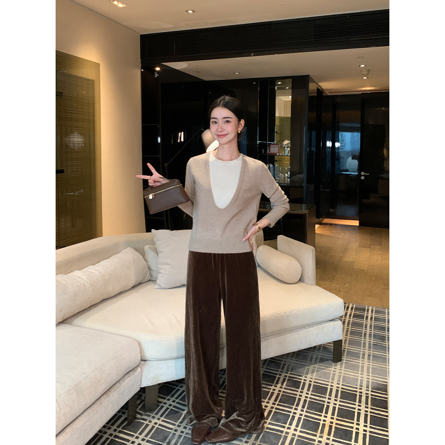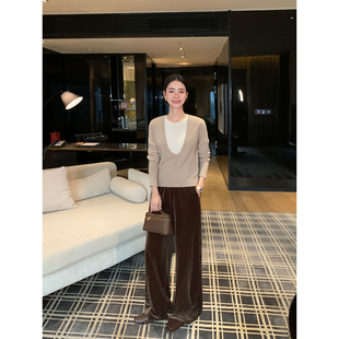 Lin 宽松阔腿长裤 现货7折 复古丝绒休闲直筒裤 时髦松弛 Maven