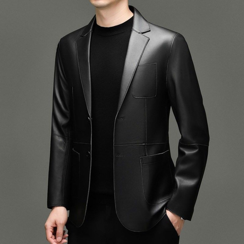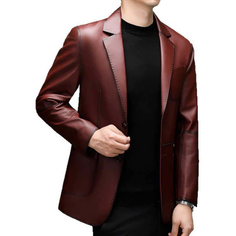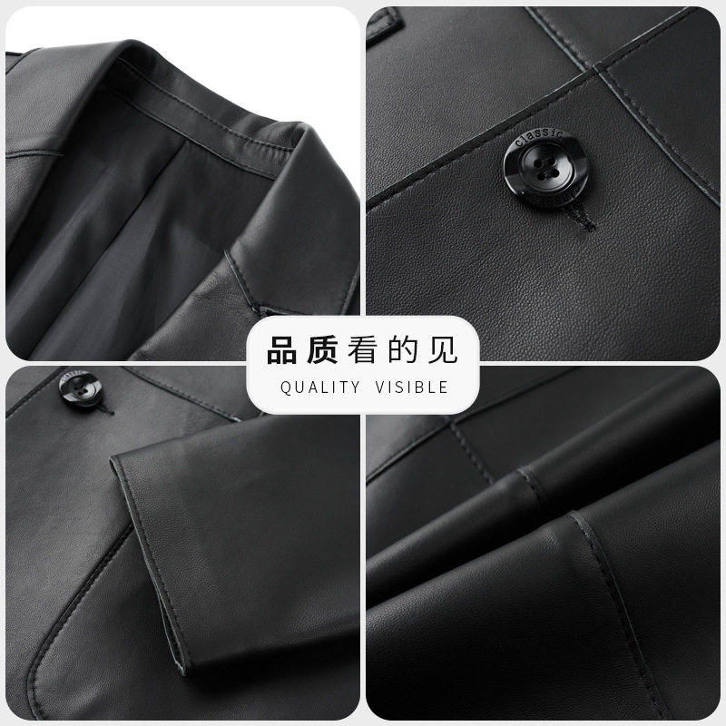 真皮外套辑明线真口袋轻商务皮上衣 绵羊皮休闲西服修身 秋冬季 男士