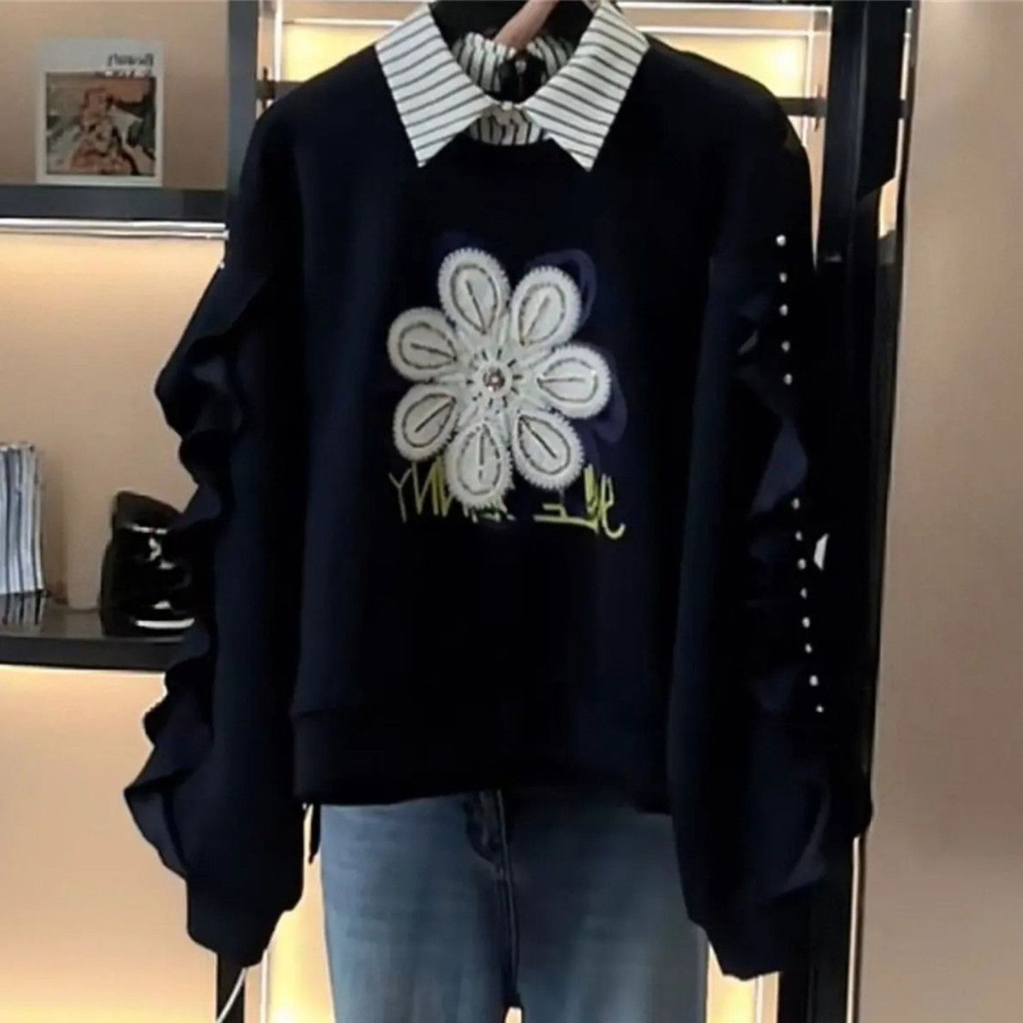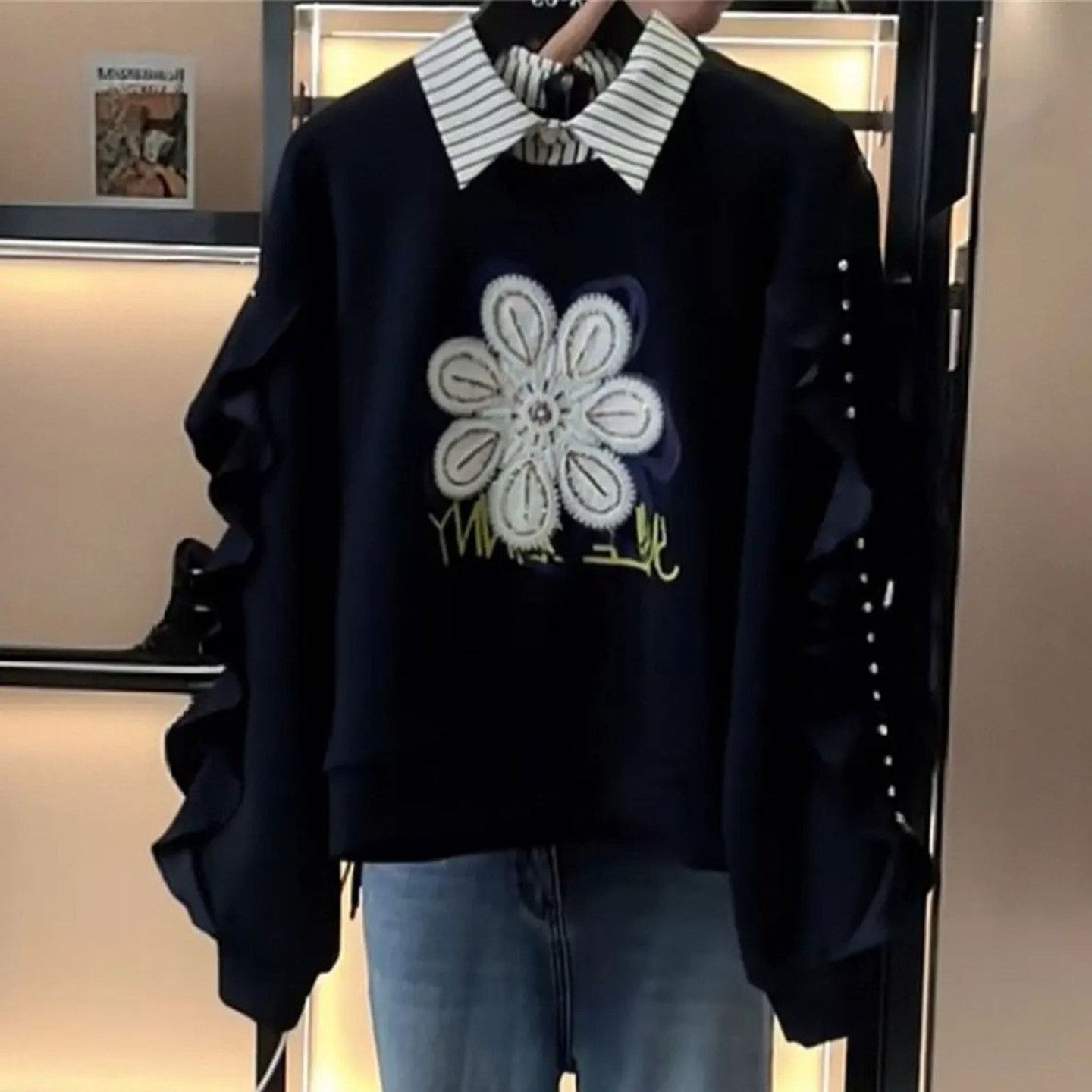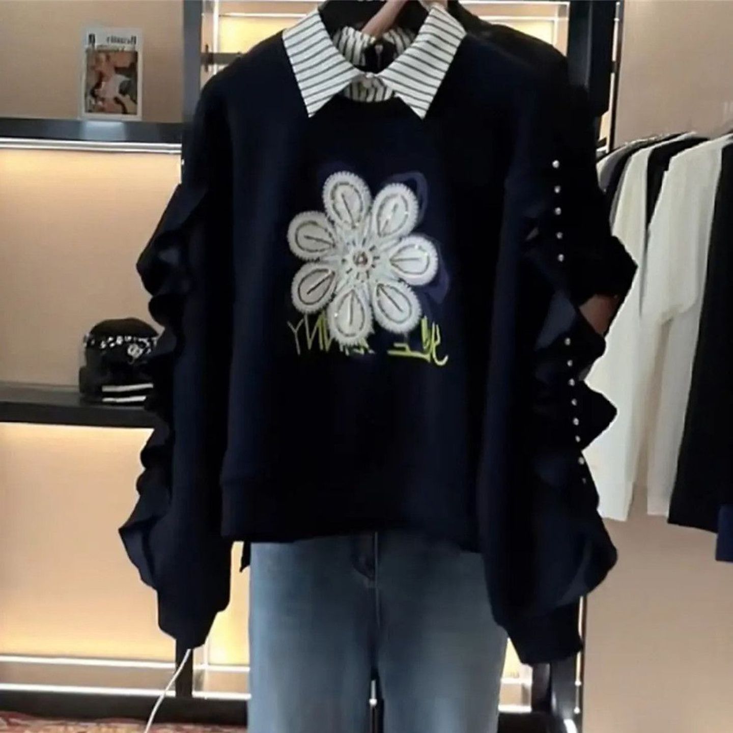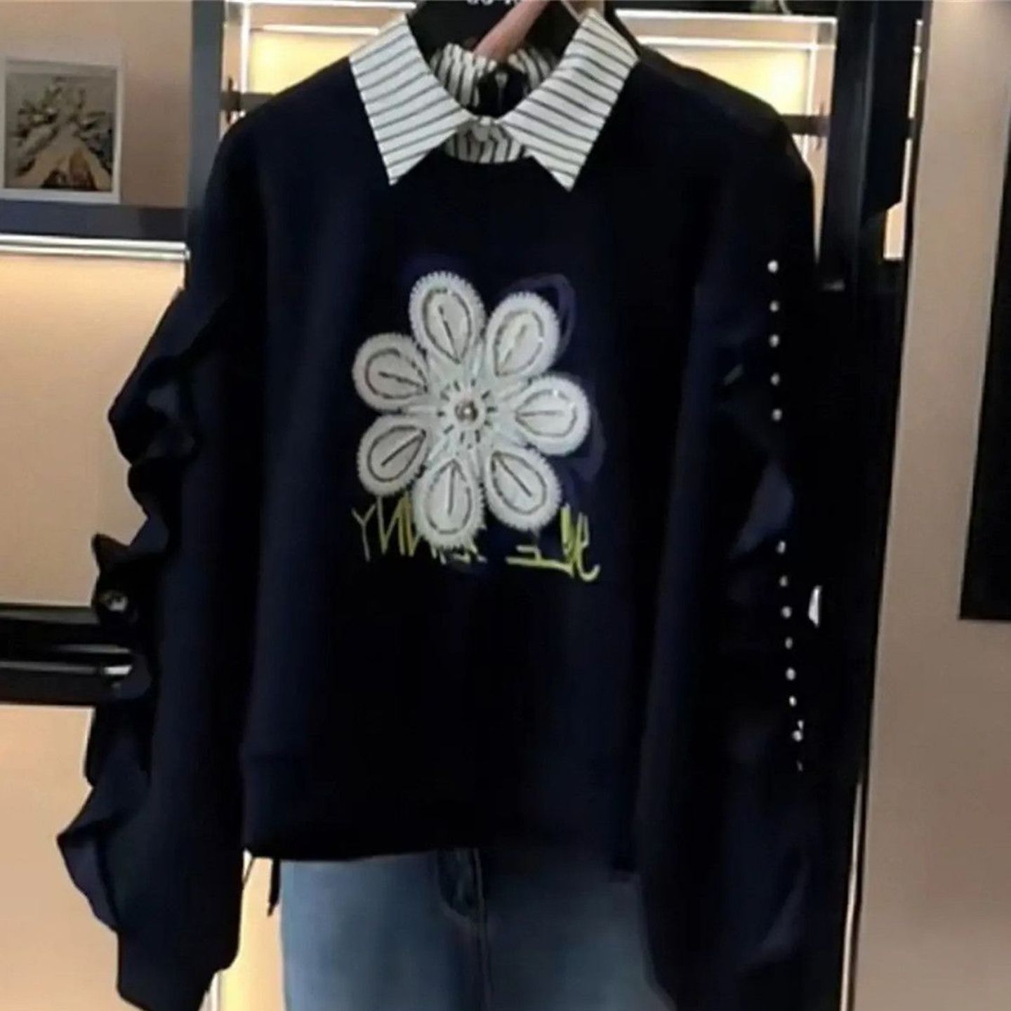 早秋时尚 卫衣女 休闲百搭显瘦上衣潮欧货重工高级感拼接假两件长袖