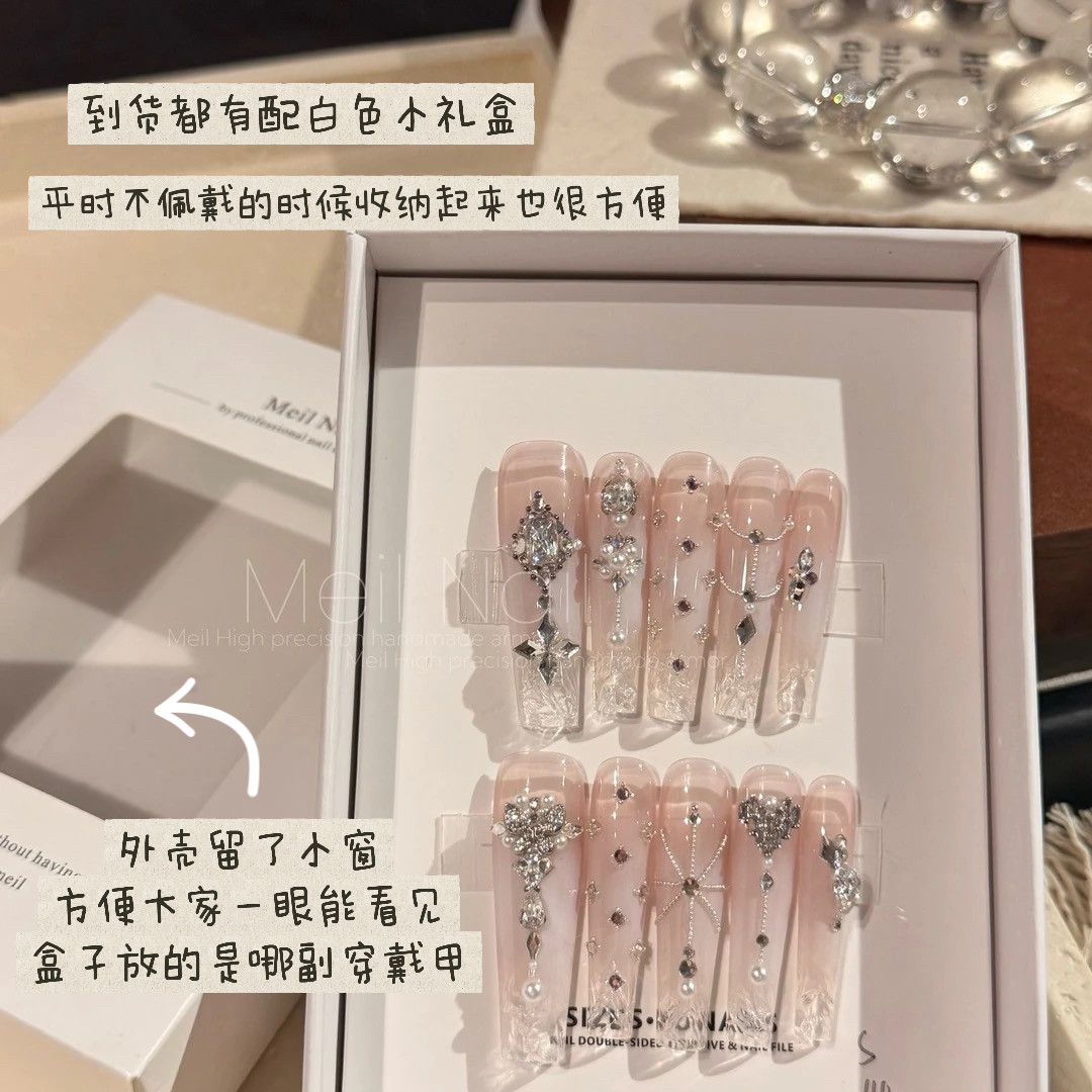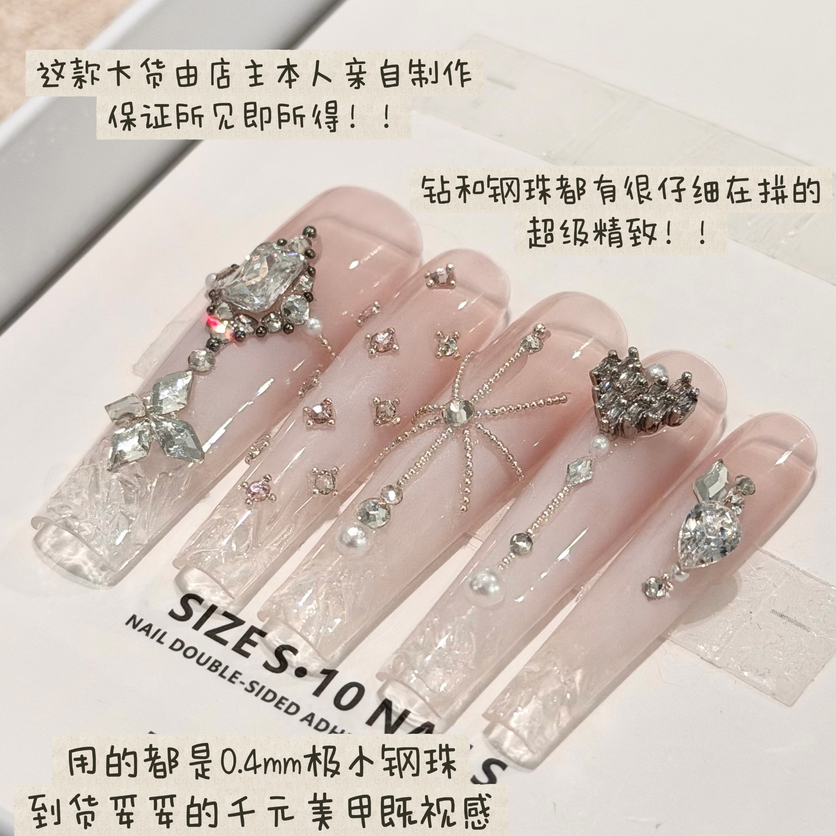 中长款 魔都 钢珠拼钻美甲琉璃甲清冷感婚甲手工穿戴甲 Nail Meil