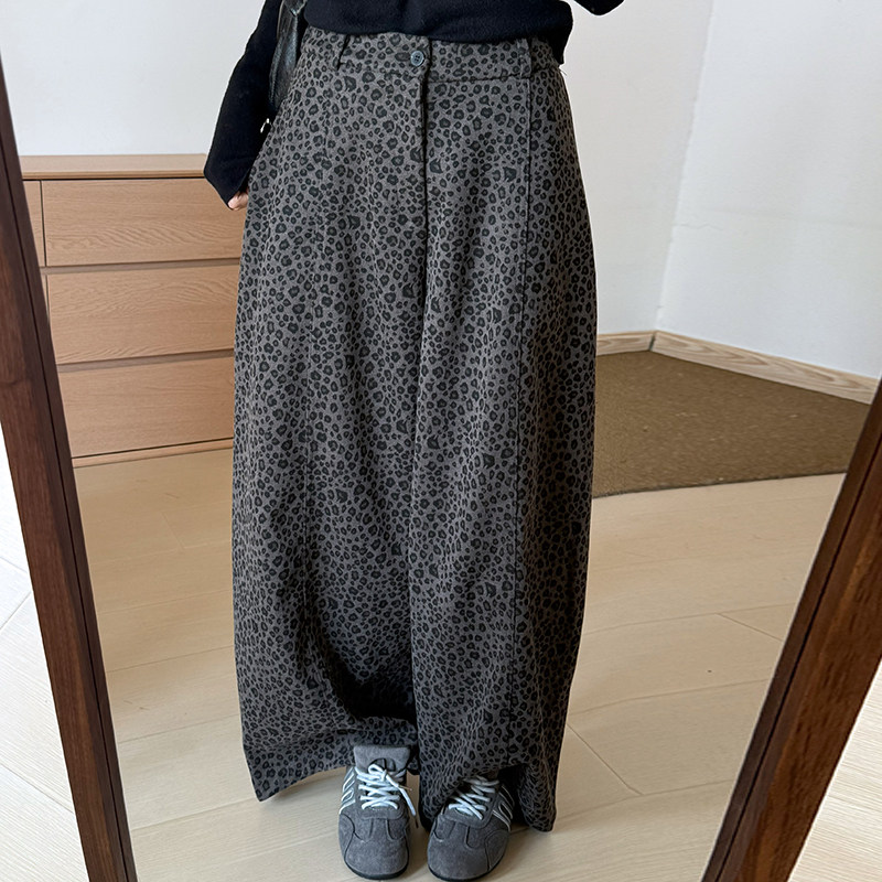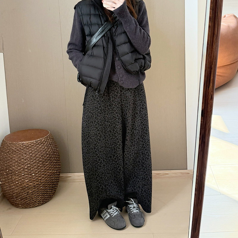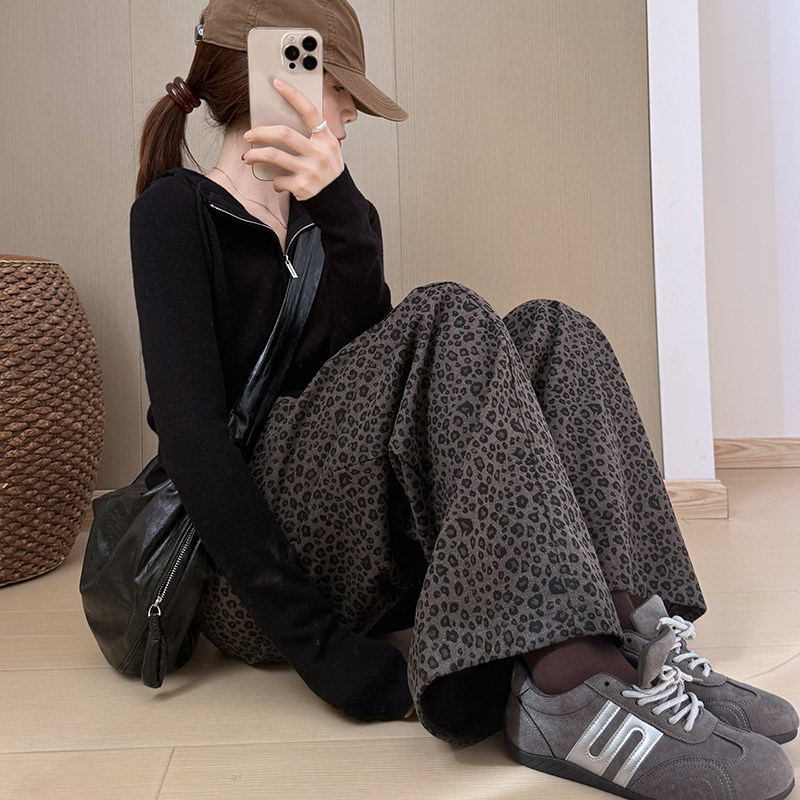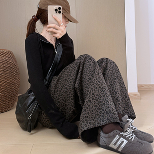 减龄显瘦直筒运动长裤 话里气质豹纹加绒裤 韩版 新款 女 子2025秋季