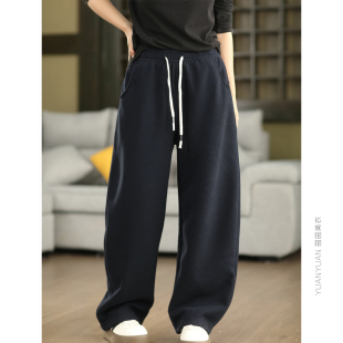 文艺宽松显瘦长裤 高密加厚卫裤 秋冬桑蚕丝内里绵羊毛保暖休闲裤
