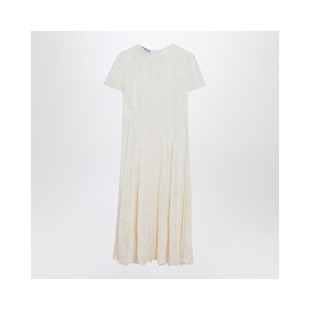 潮奢 米白色锦缎真丝混纺连衣裙 Prada 女士 P3Q30 普拉达 1h可退
