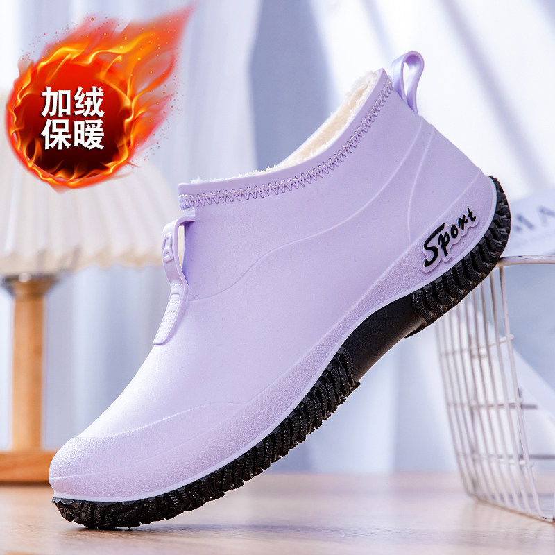 低帮浅口防滑厨房耐磨软底加棉绒胶鞋 女士雨靴工作防水鞋 雨鞋 时尚