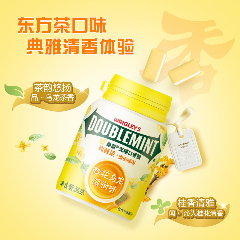 3瓶休闲零食糖果 绿箭桂花乌龙薄荷味口香糖40粒56g 全新上市