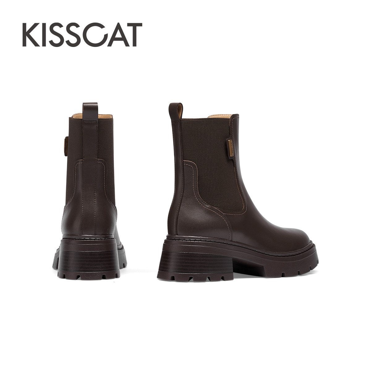 EX08009 复古英伦风情水洗马皮缝线设计圆头切尔西靴 茉莉雅集