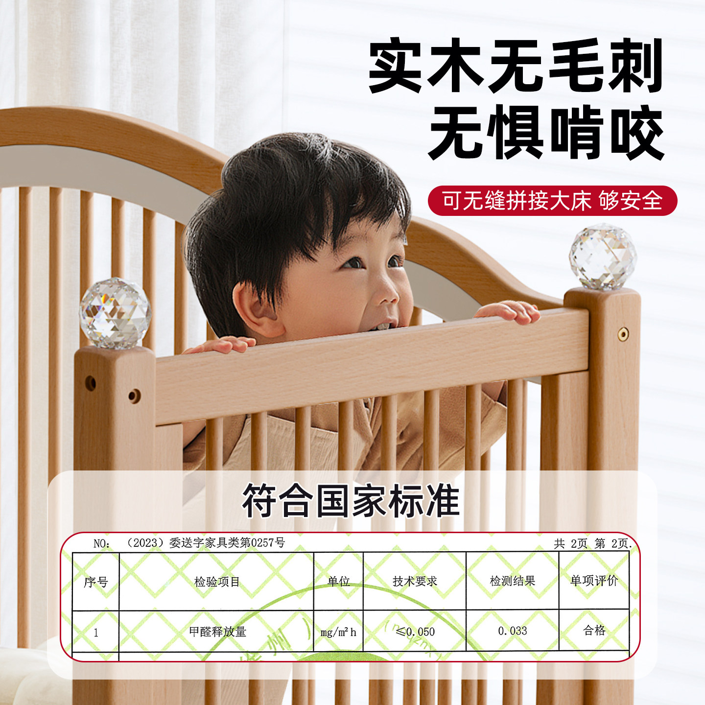榉木儿童床拼接床加宽床边实木床宝宝婴儿床可升降高护栏平接大床
