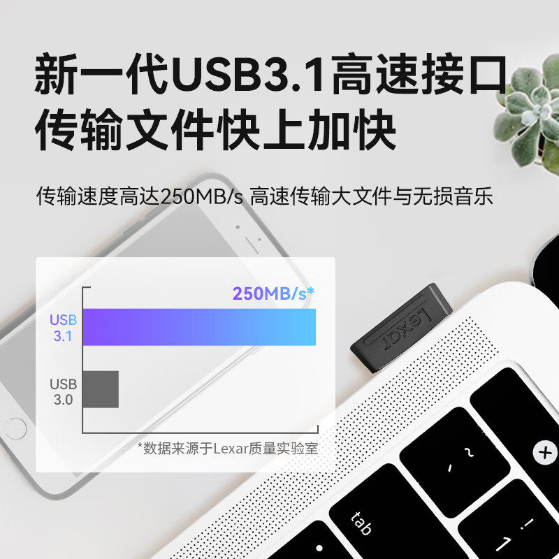 Lexar雷克沙64G128G256G优盘车载U盘手机电脑迷你USB3.1 自营