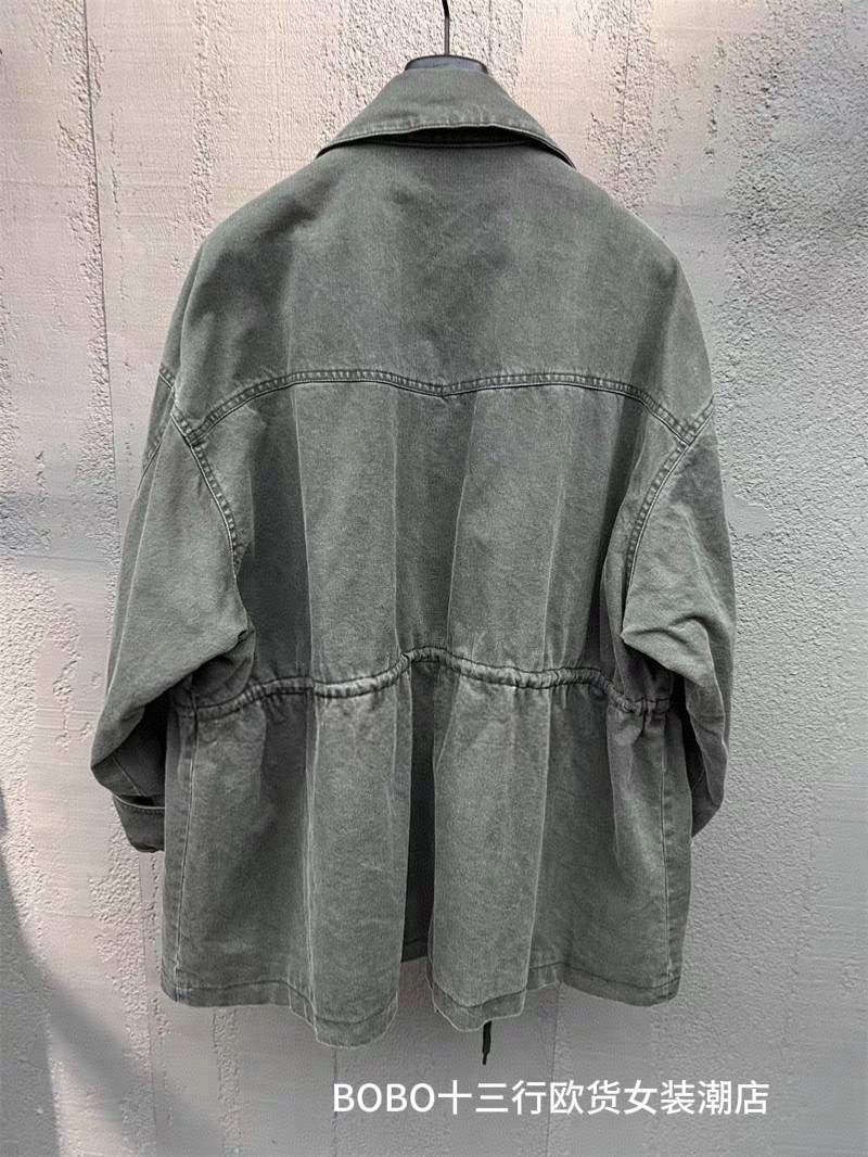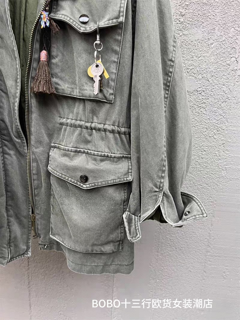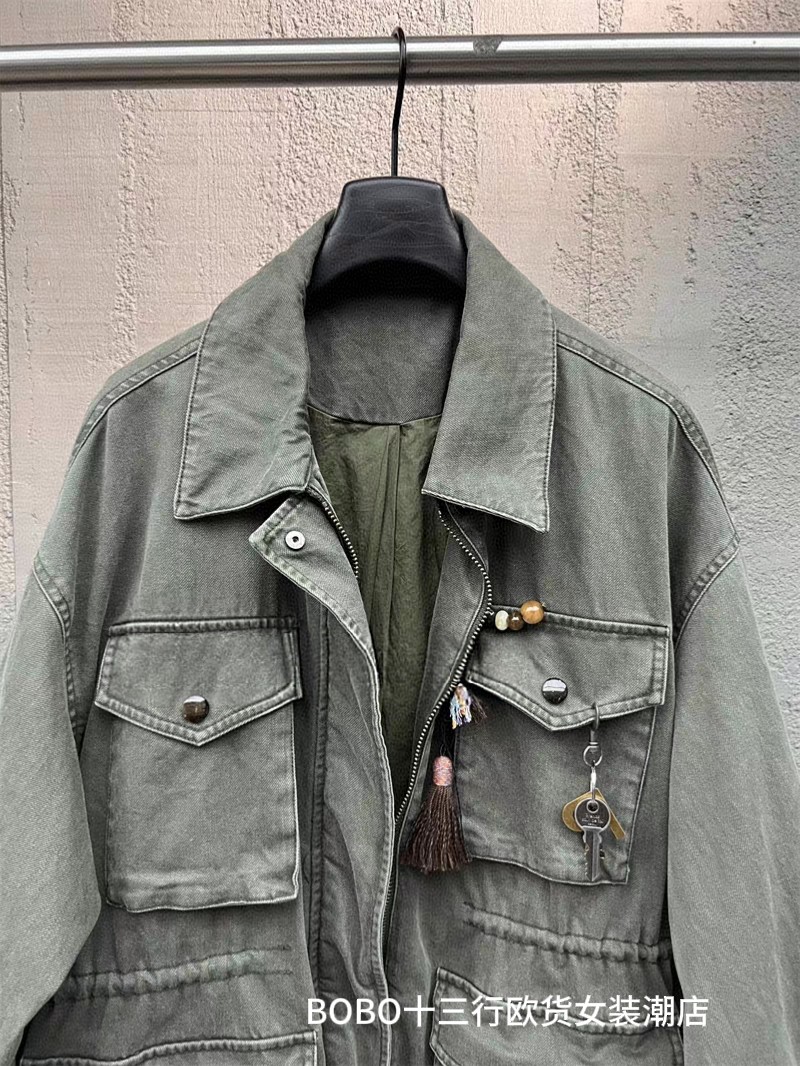 外套 勋章军绿色重工水洗做旧慵懒感落肩工装 欧货bobo1972秋装 新品