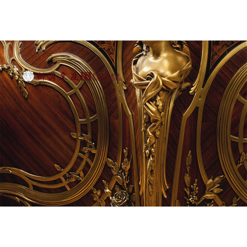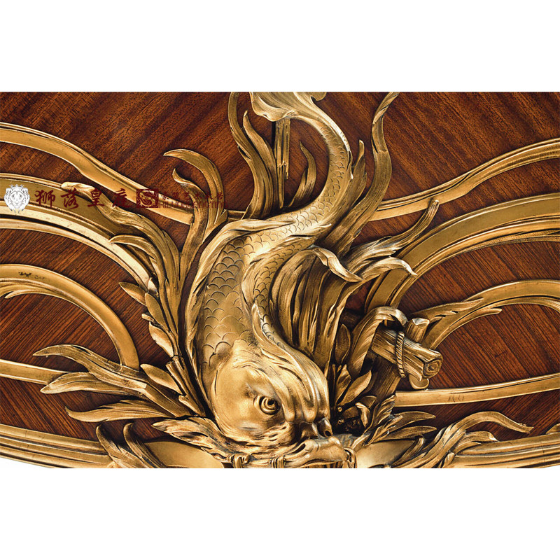 狮落豪庭奢华古典复古玄关桌进口实木手工纯铜雕花大理石龙鱼玄关