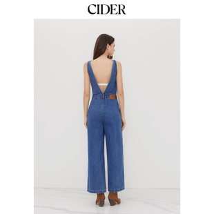 CIDER春秋女装 114498326 牛仔V领纽扣口袋阔腿连体裤