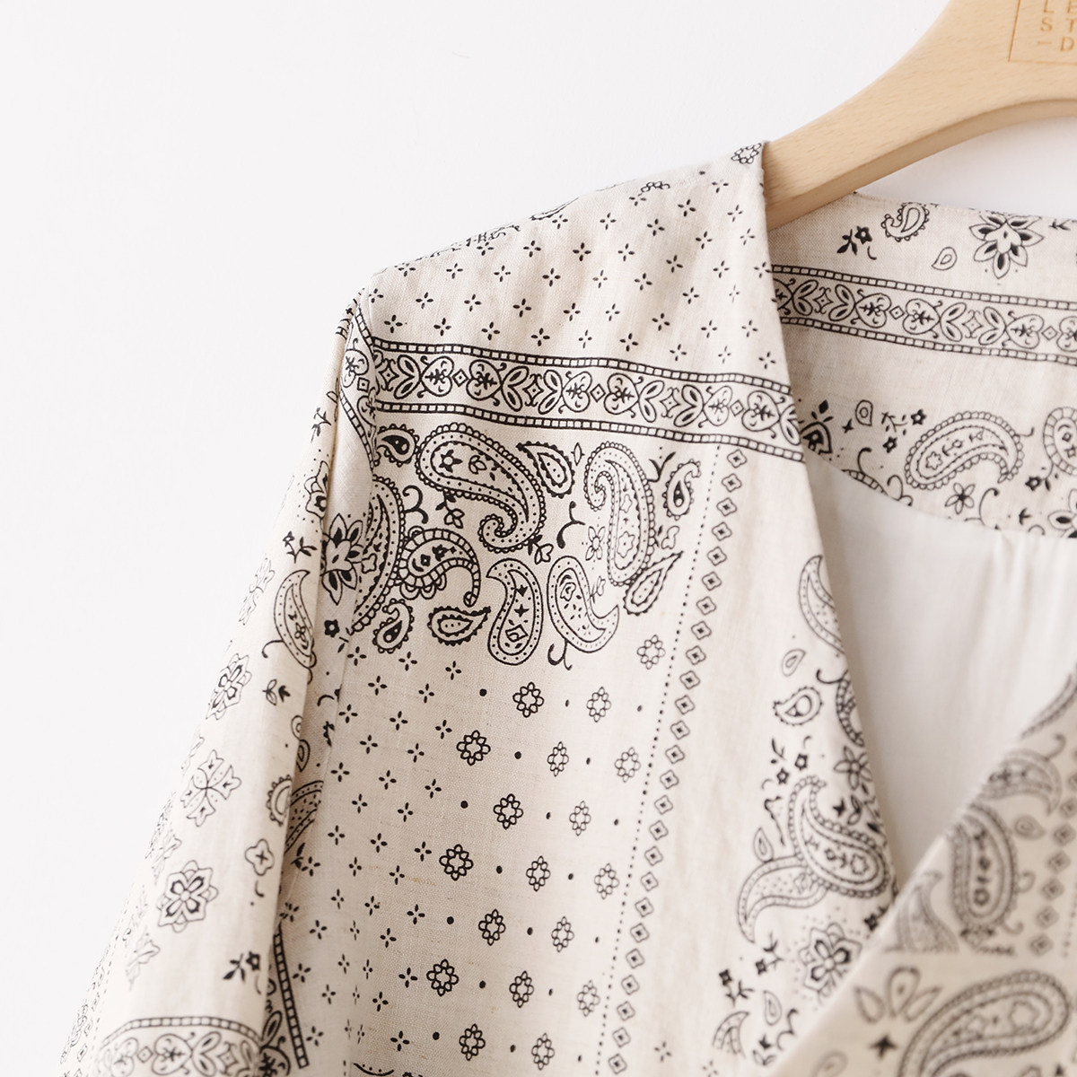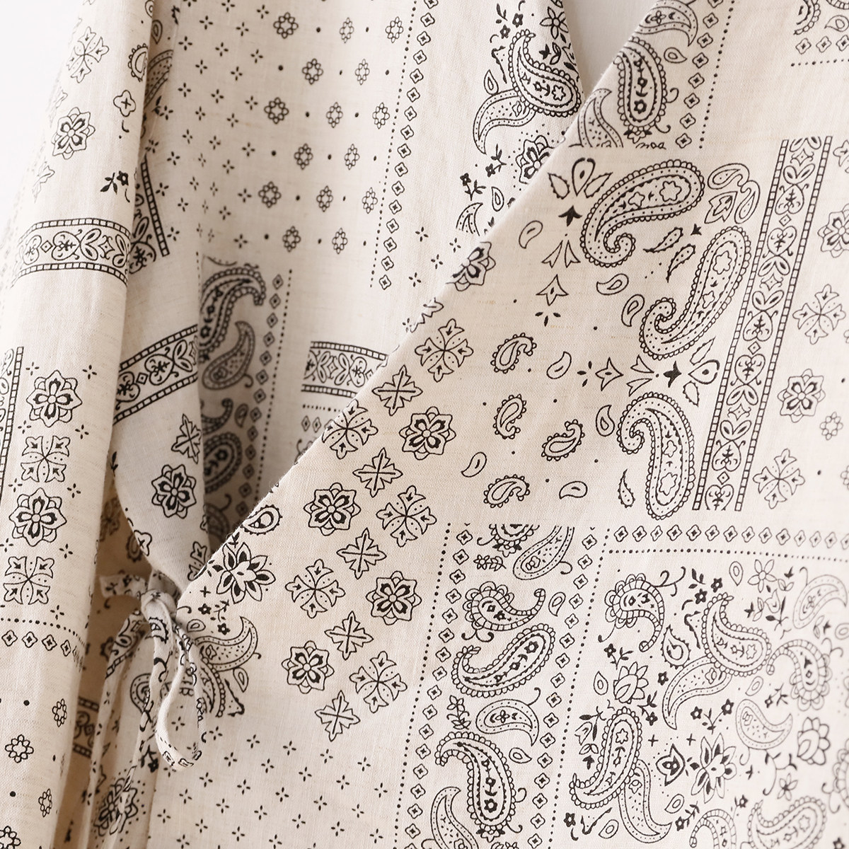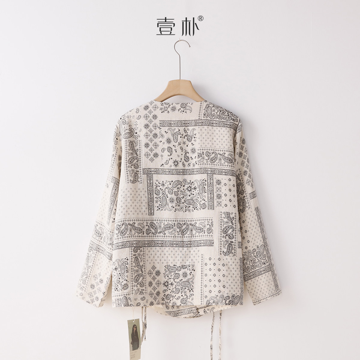 印花系带亚麻开衫 M胸围112 秋季 5SP512 衣长64 外套上衣 文艺数码
