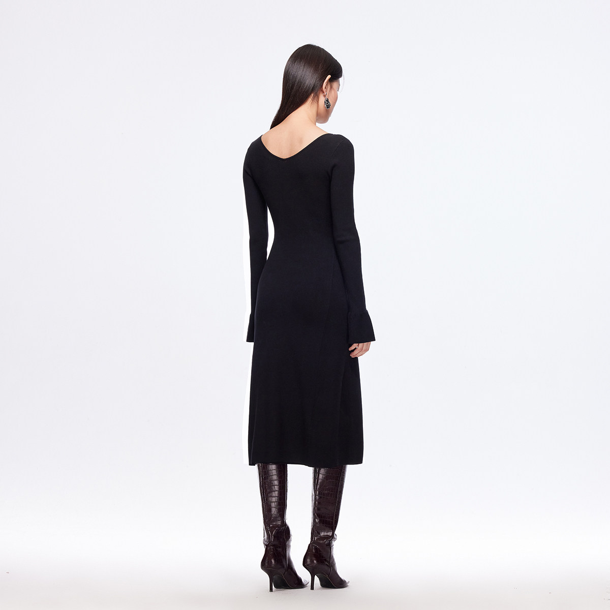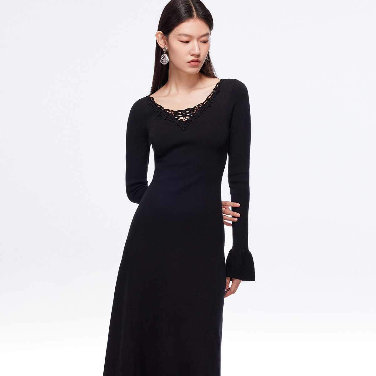 修身 蕾丝拼接喇叭袖 针织优雅 Moda奥莱连衣裙女2025秋冬新款 Vero