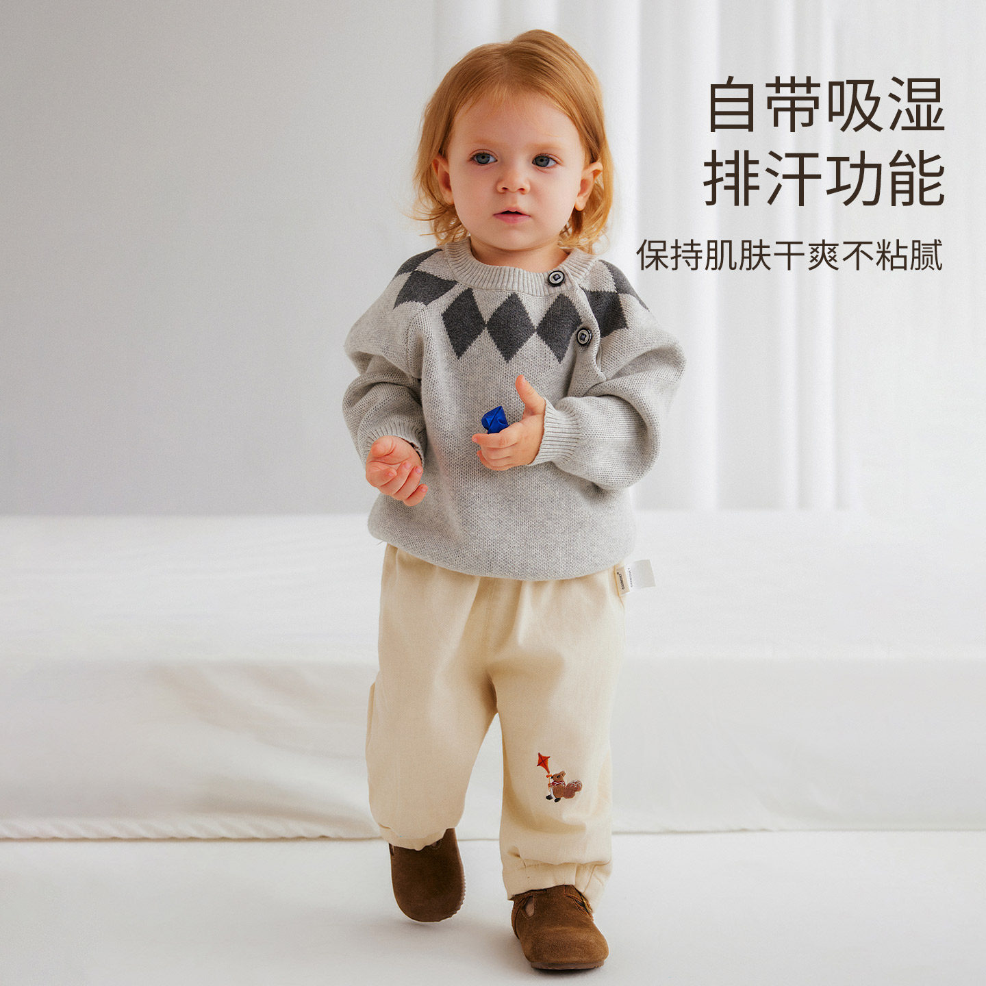mont儿童裤 弹力斜纹休闲长裤 子2025秋款 男童秋装 宝宝萝卜裤 Oak