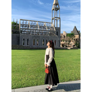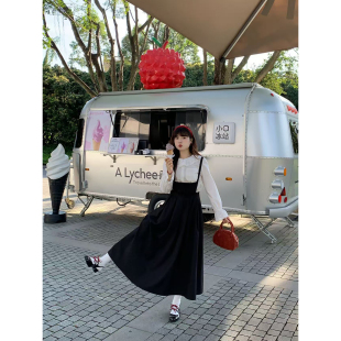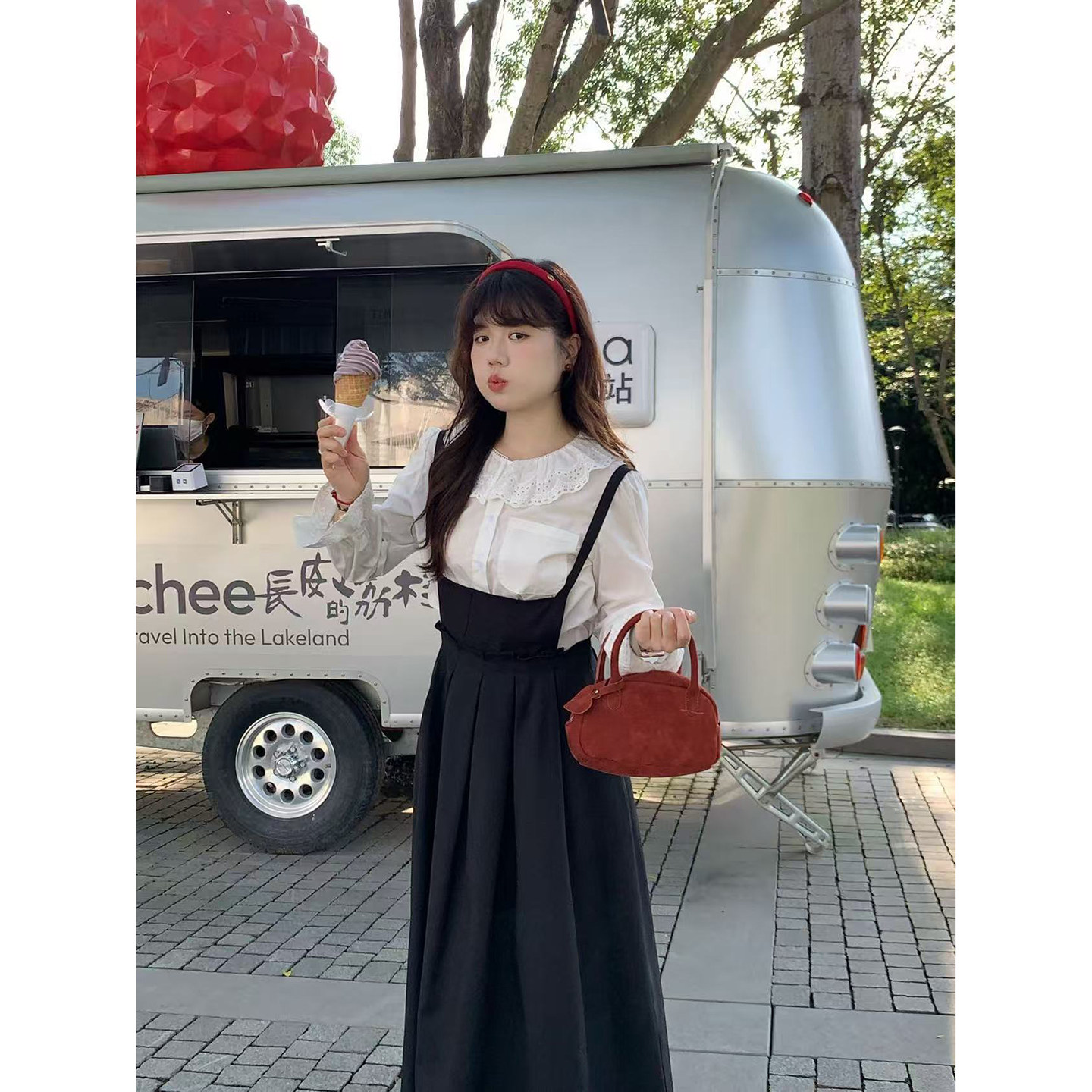 清新娃娃领衬衫 法蕾女孩 背带裙两件套女秋 胖mm 米米子微胖大码