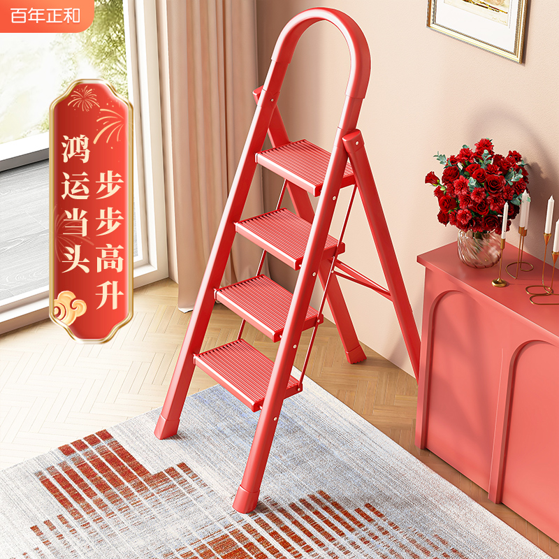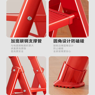 步步高升家庭用梯子乔迁之喜折叠人字梯加厚加粗款 红色伸缩铝合金