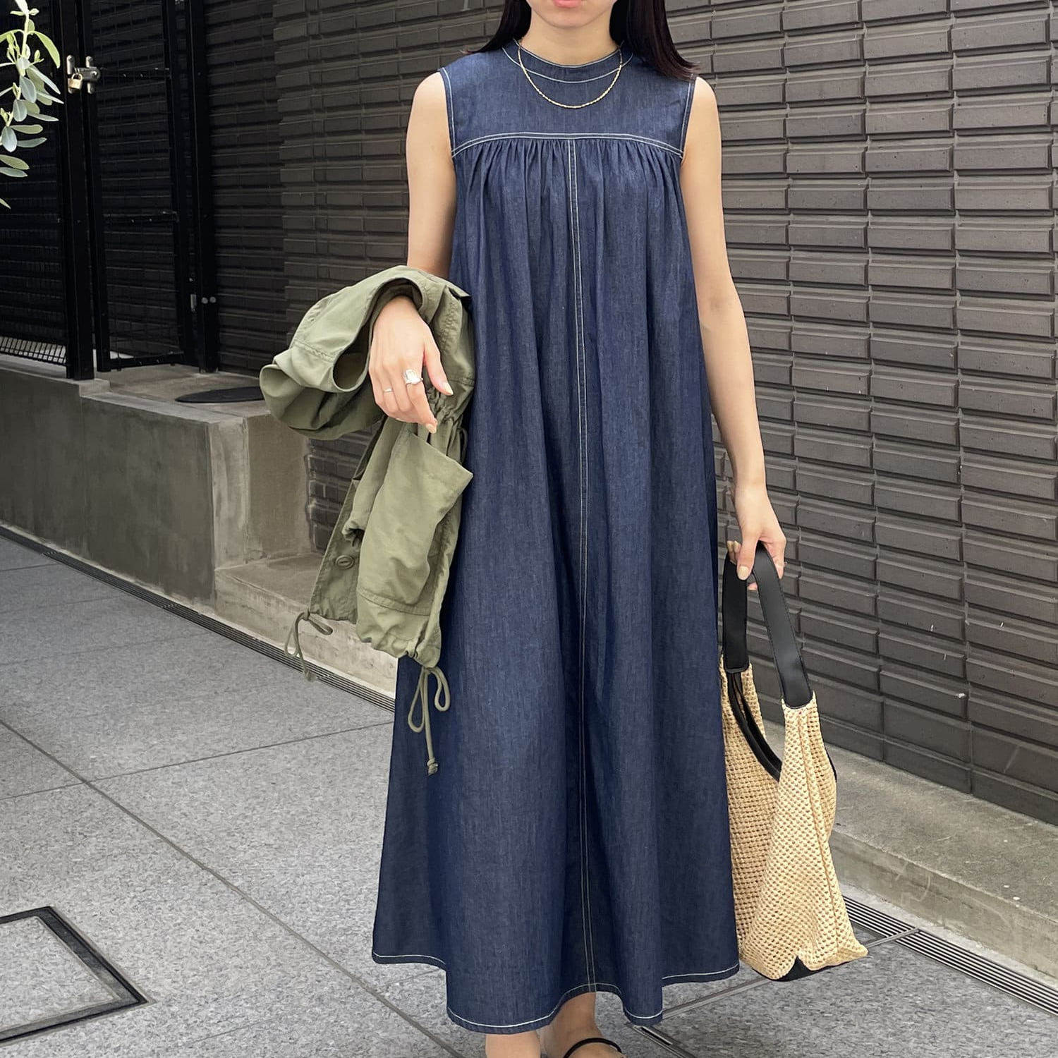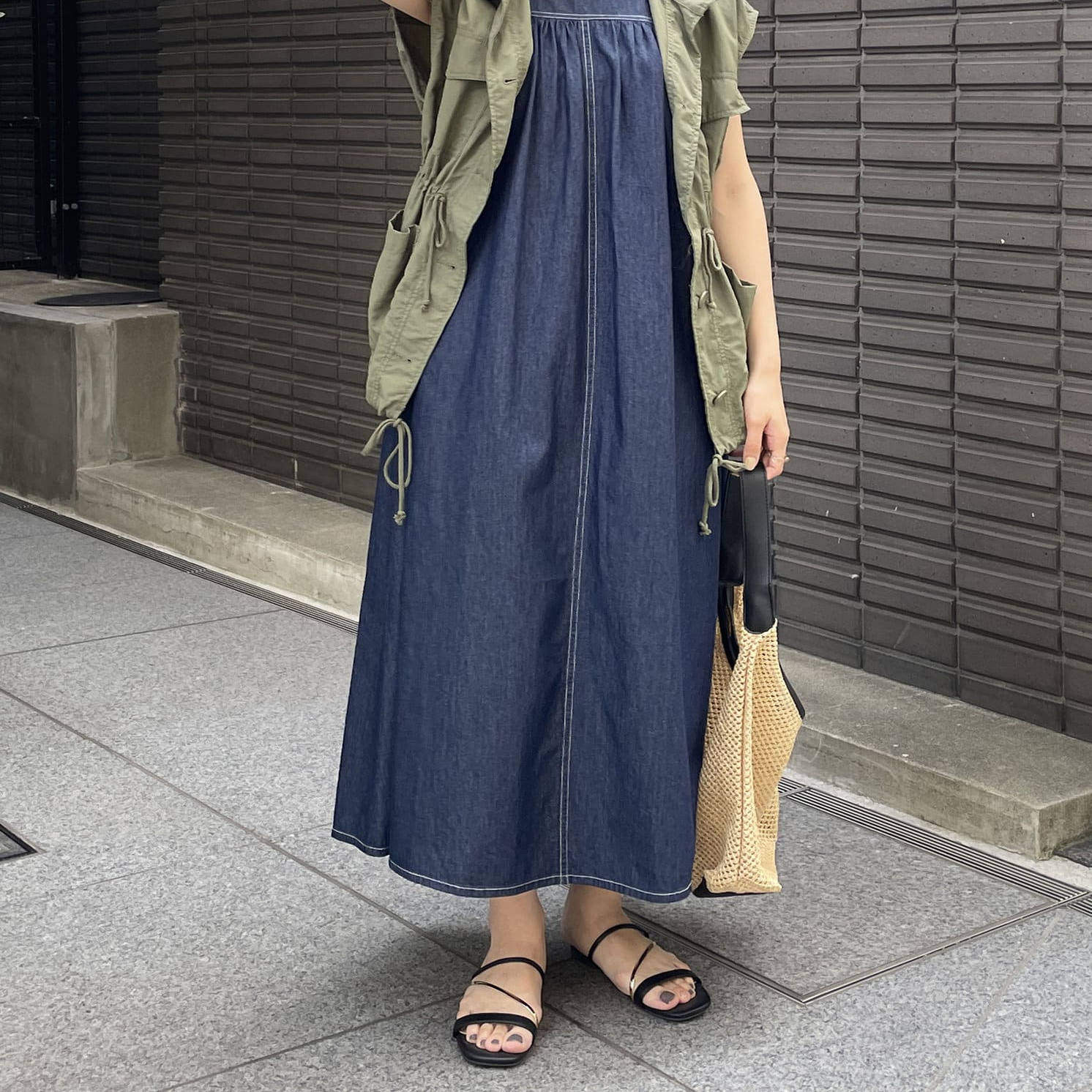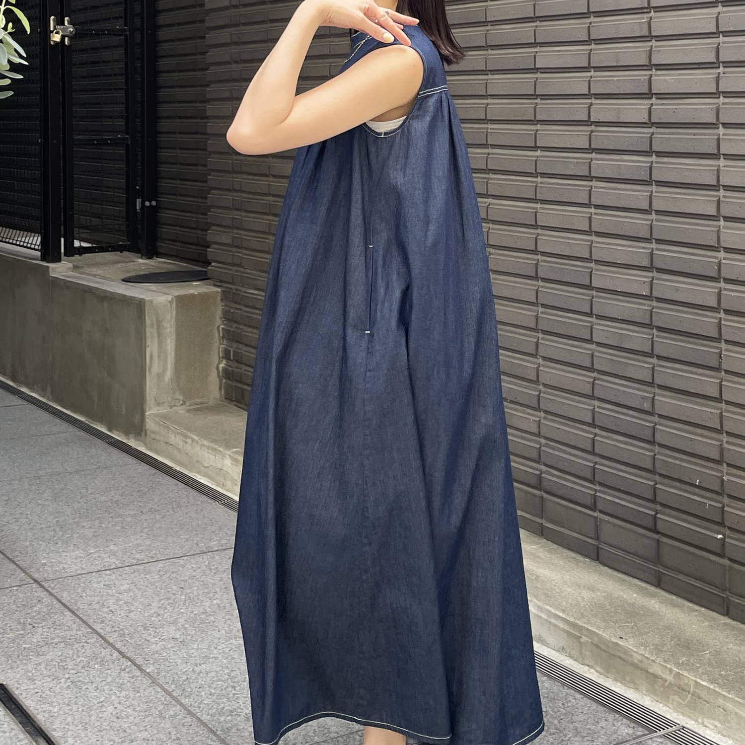 纯元 日单THEVON纯棉背心连衣裙深蓝色连衣裙休闲连衣裙