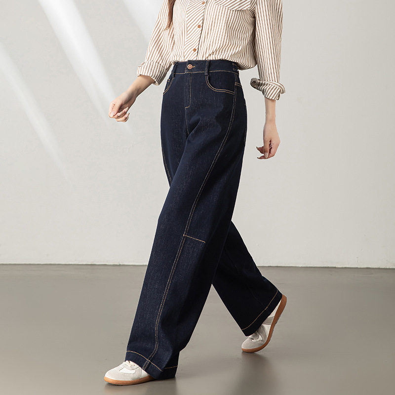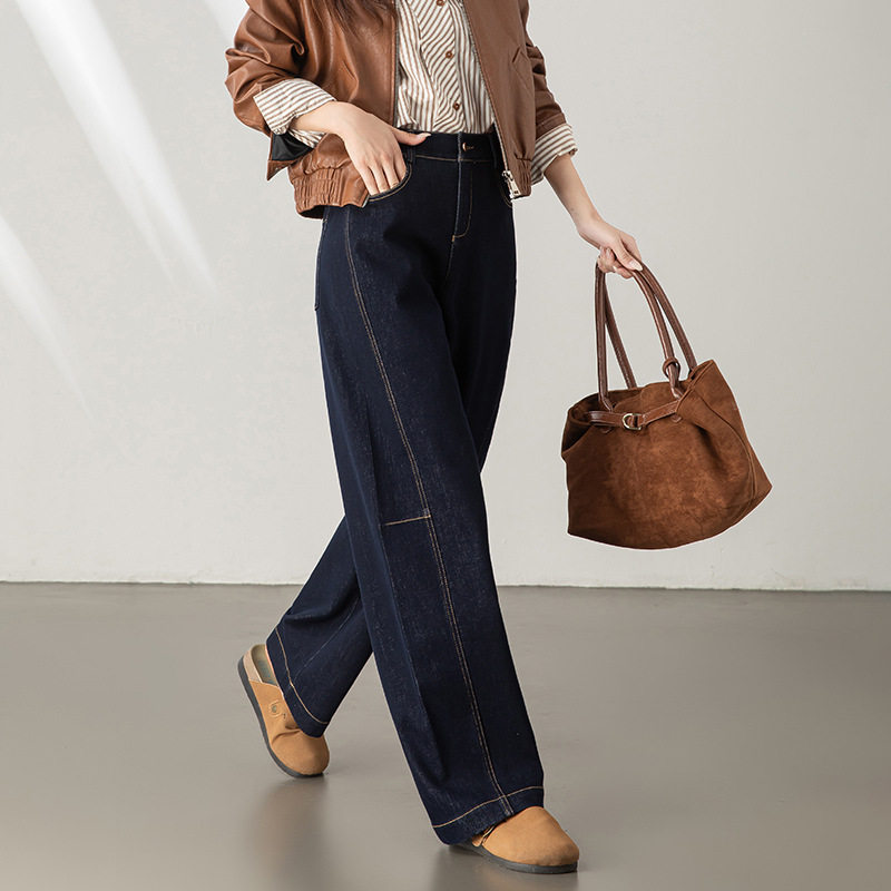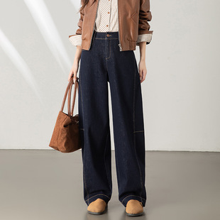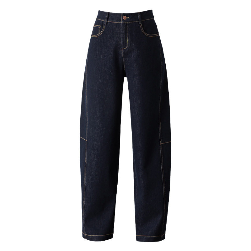休闲裤 萍语润麻小众设计弯刀牛仔裤 宽松显瘦时尚 新款 子 女2025秋季