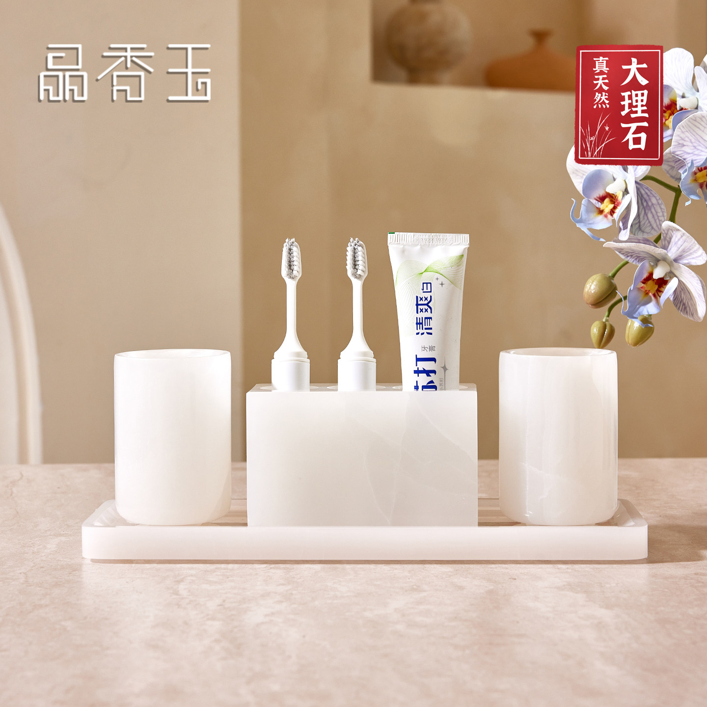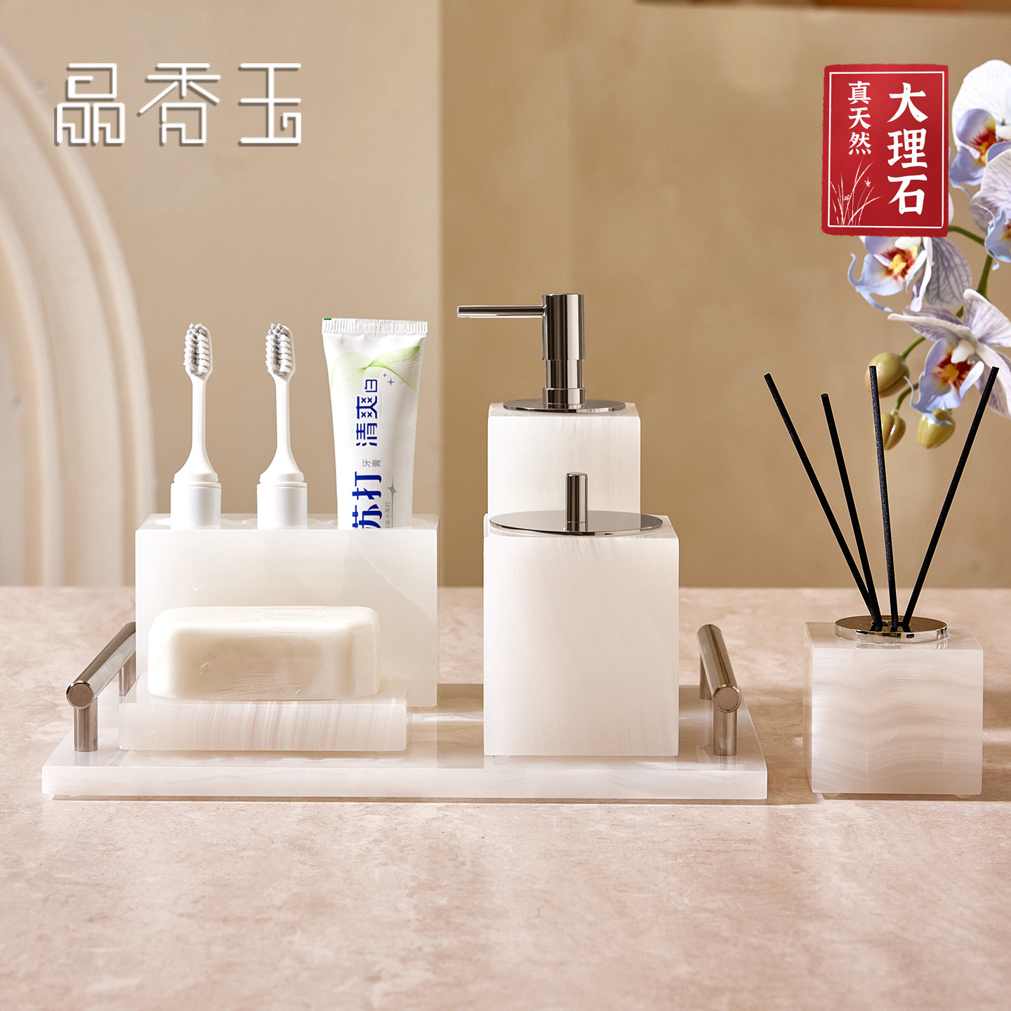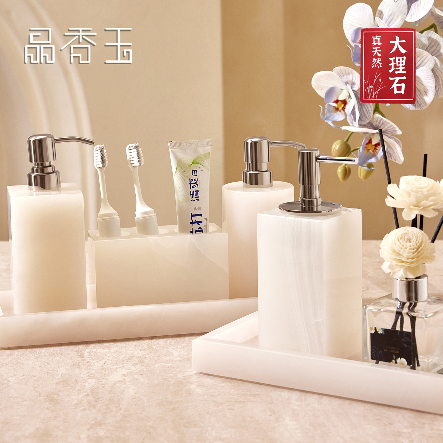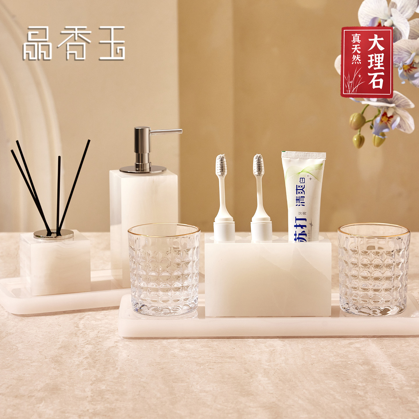 高档轻奢白玉大理石卫浴洗漱套装 酒店专用托盘漱口杯牙刷架乳液瓶