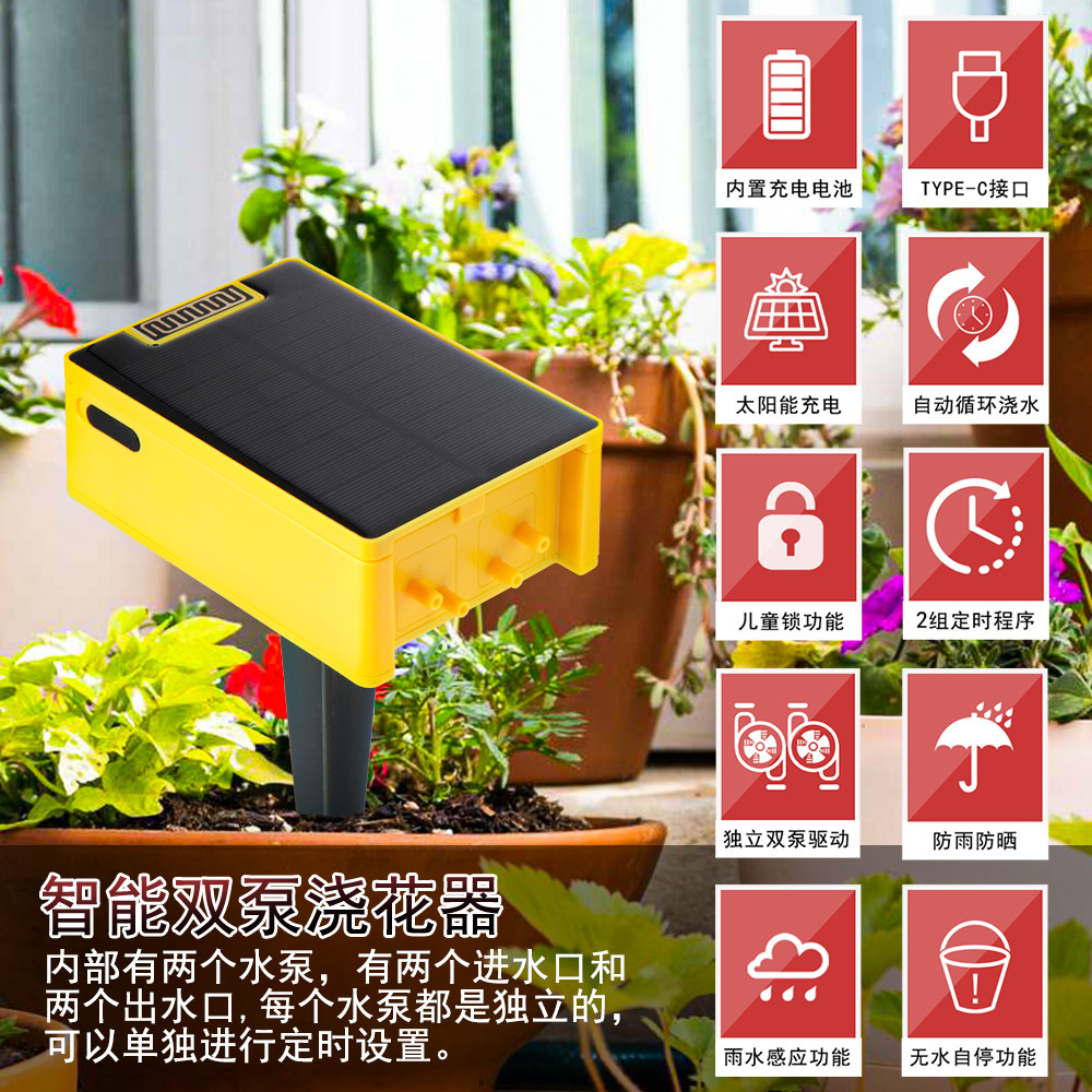双泵太阳能雨感全自动浇花神器懒人花园旅行雾化智能定时浇花系统