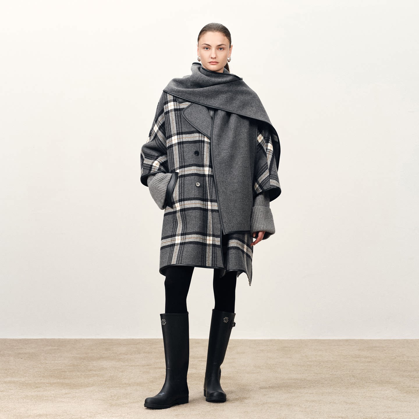 Fabrique挪威森林灰色羊毛大衣格纹斗篷外套2025新款 秀场同款
