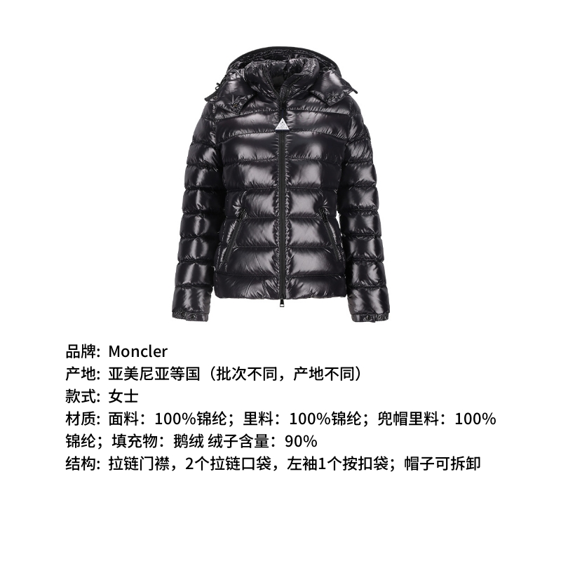 女士修身 1A52400 版 鹅绒连帽羽绒服外套 68950 短款 Moncler蒙口