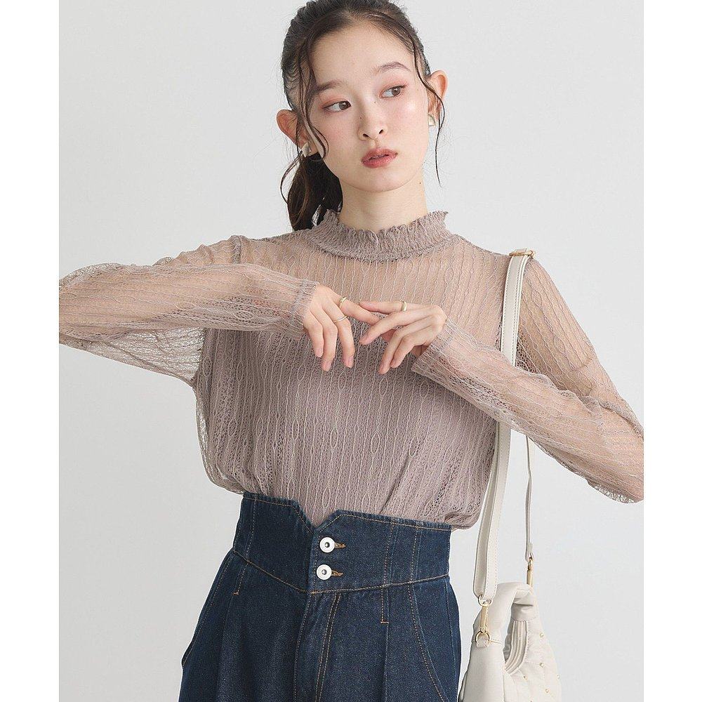 上衣 1h可退 女士蕾丝拼接长袖 music&ecology 透肤 日本直邮earth