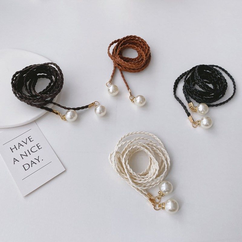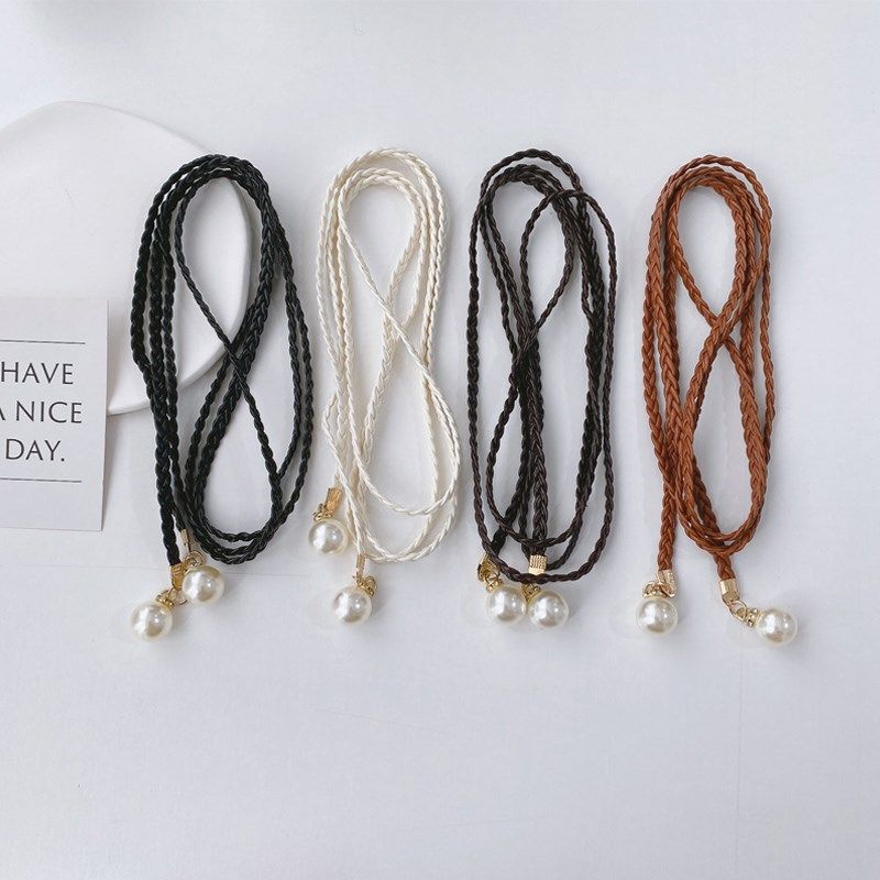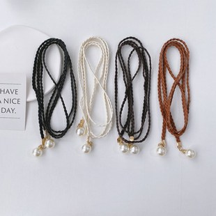 珍珠细窄皮绳腰l带 甜美时尚 裤 饰腰绳腰链 打结腰封 子裙子装 新款