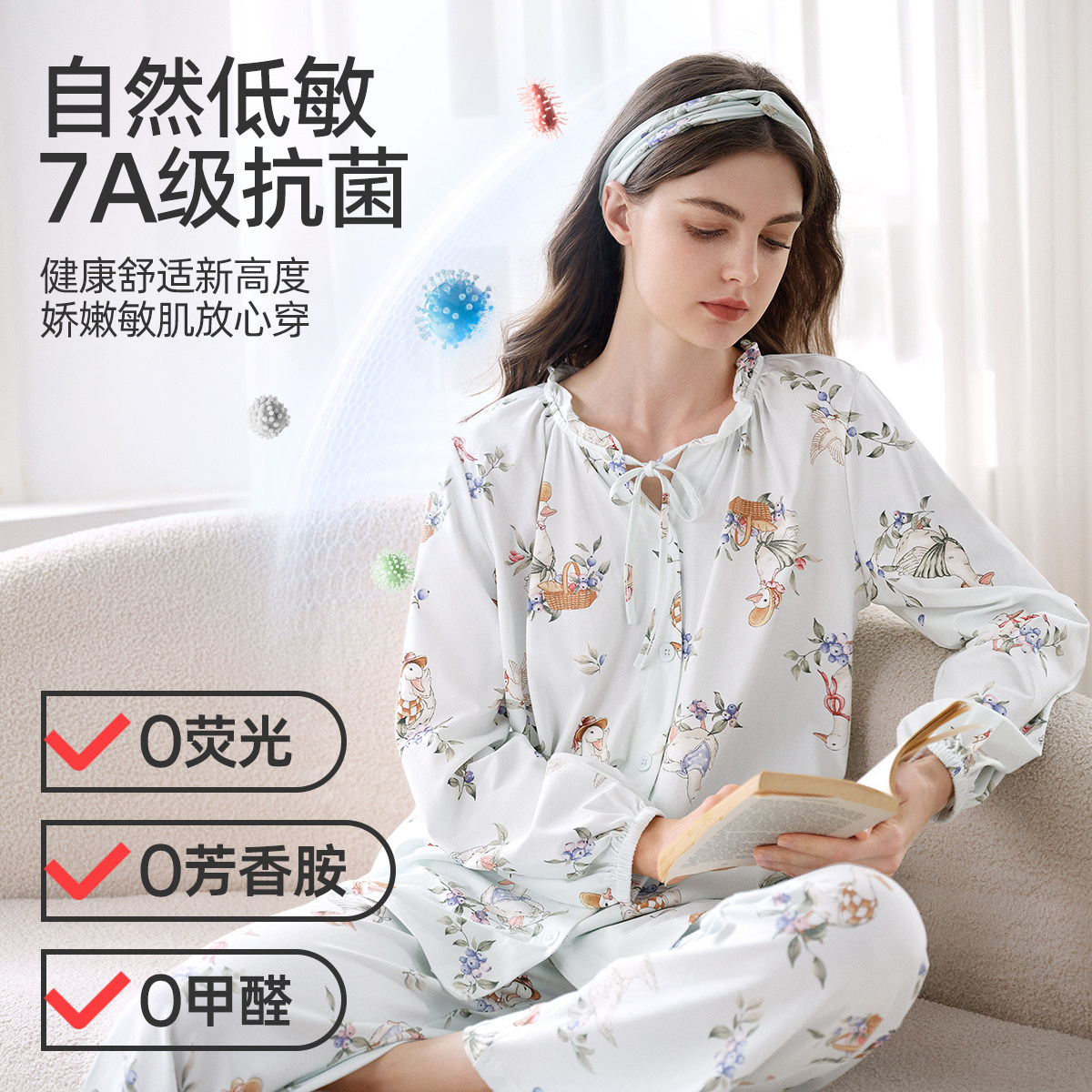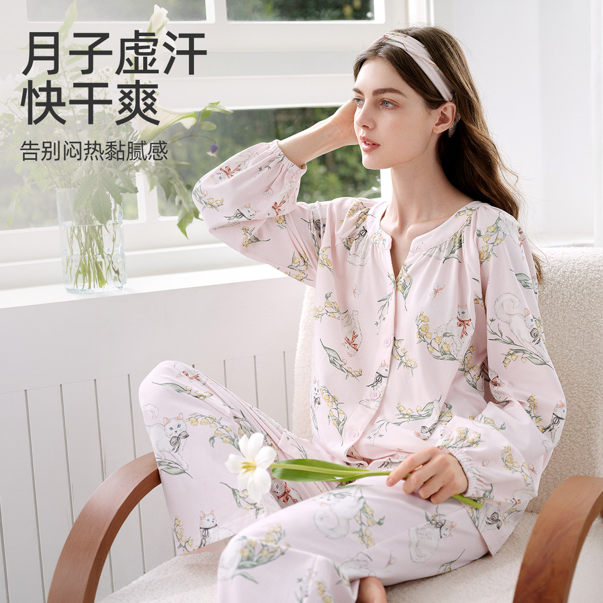 婧麒月子服夏薄款 纯棉产后孕妇睡衣哺乳喂奶怀孕期待产妇家居服女