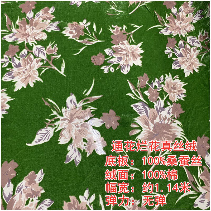 高端通花桑蚕丝真丝绒布料奢华烂花绒金丝绒旗袍连衣裙礼服装 面料