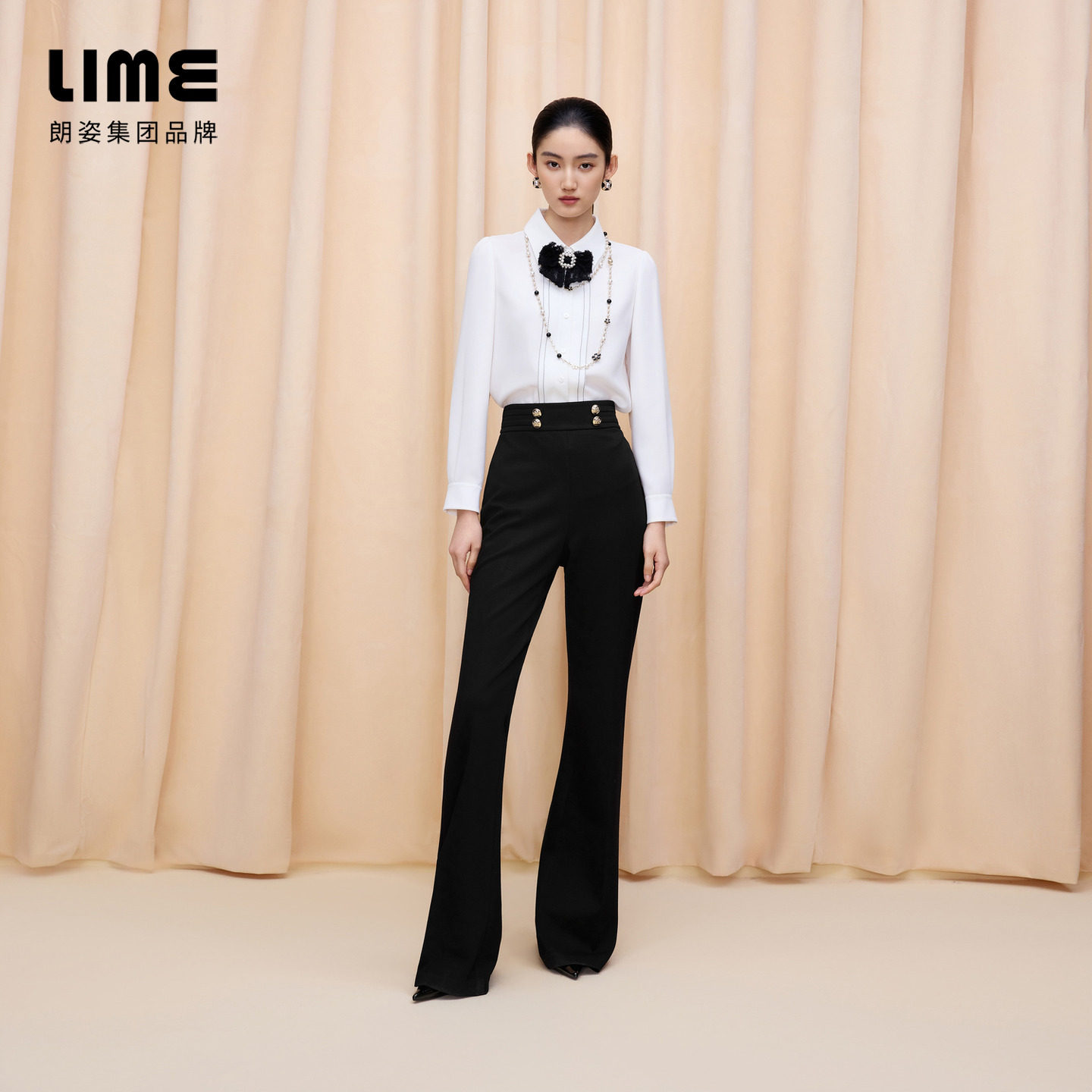 莱茵超模裤 针织弹力裤 朗姿 黑色微喇显瘦修身 新款 LIME爆款